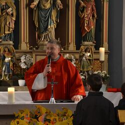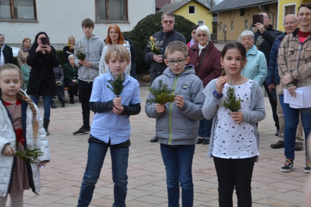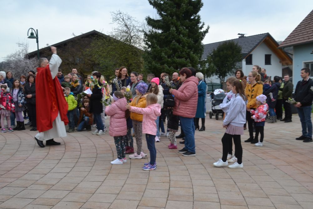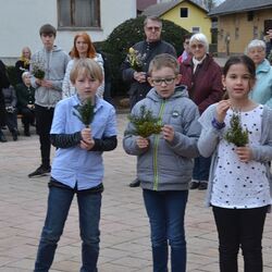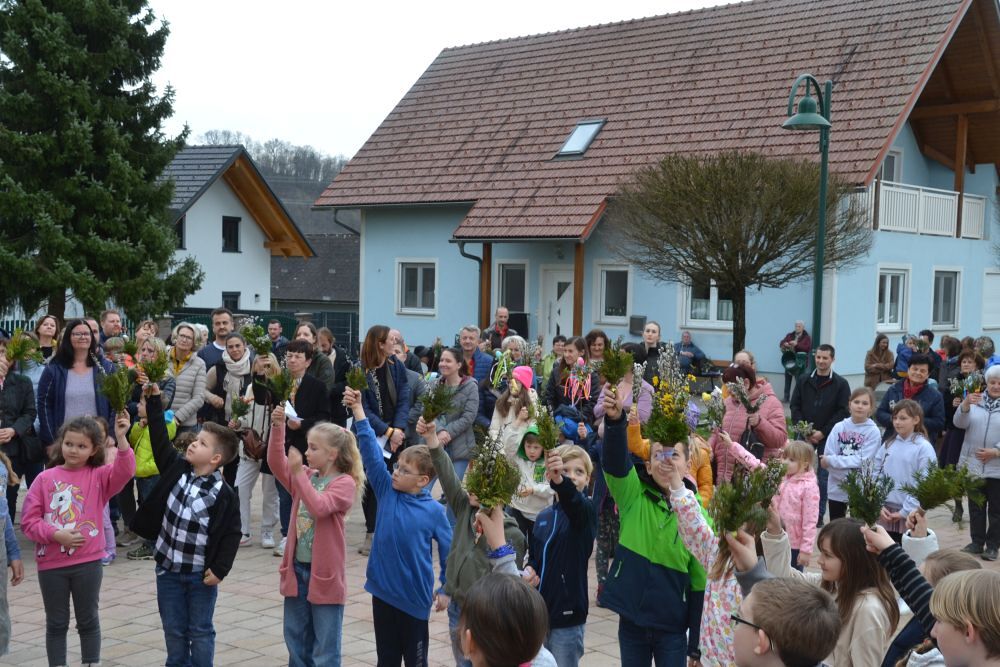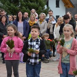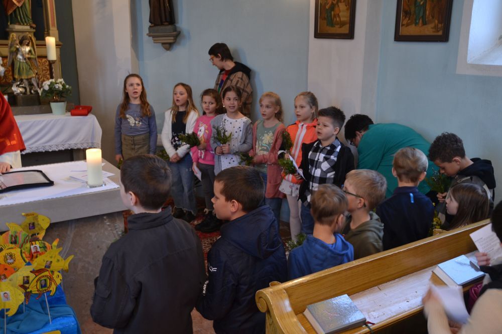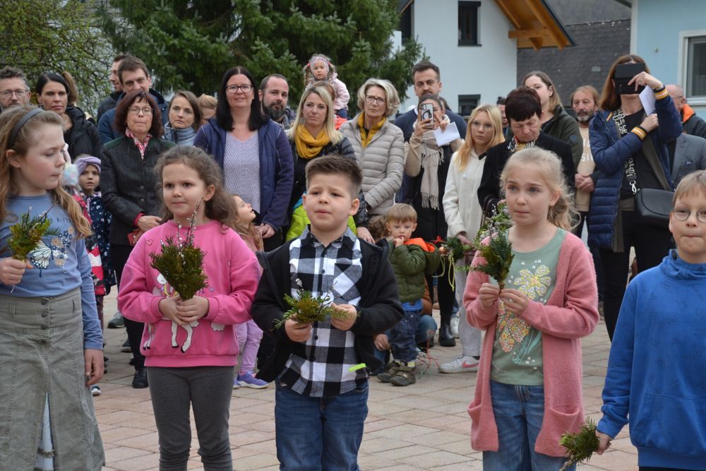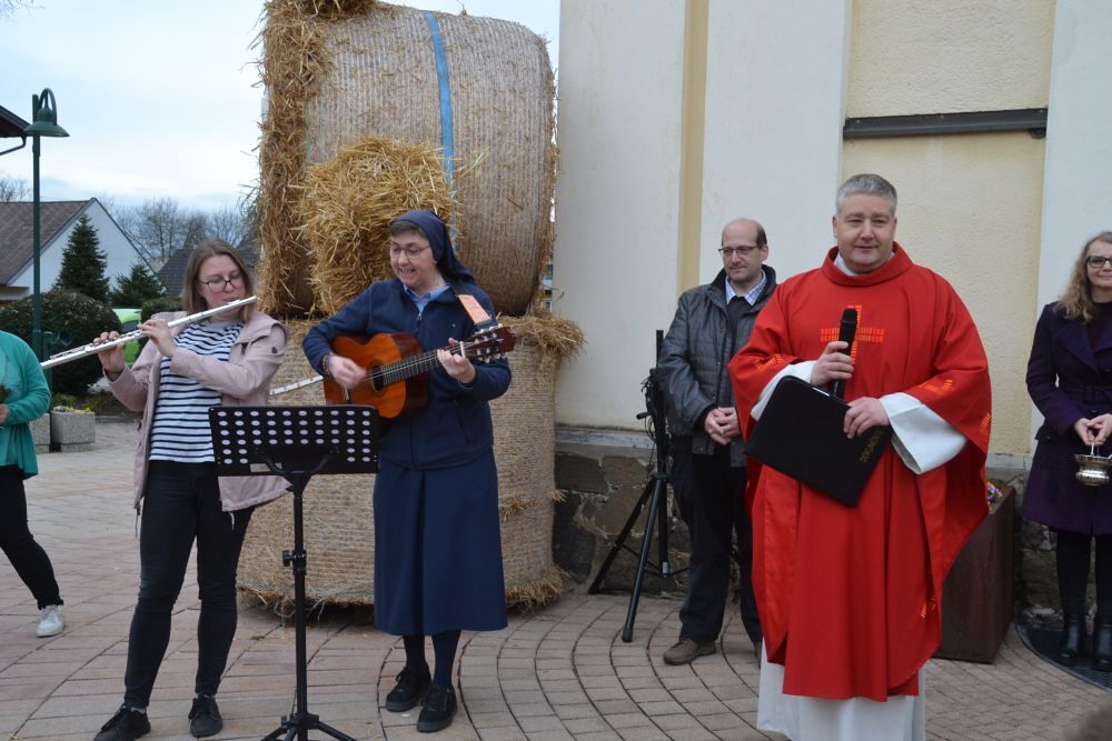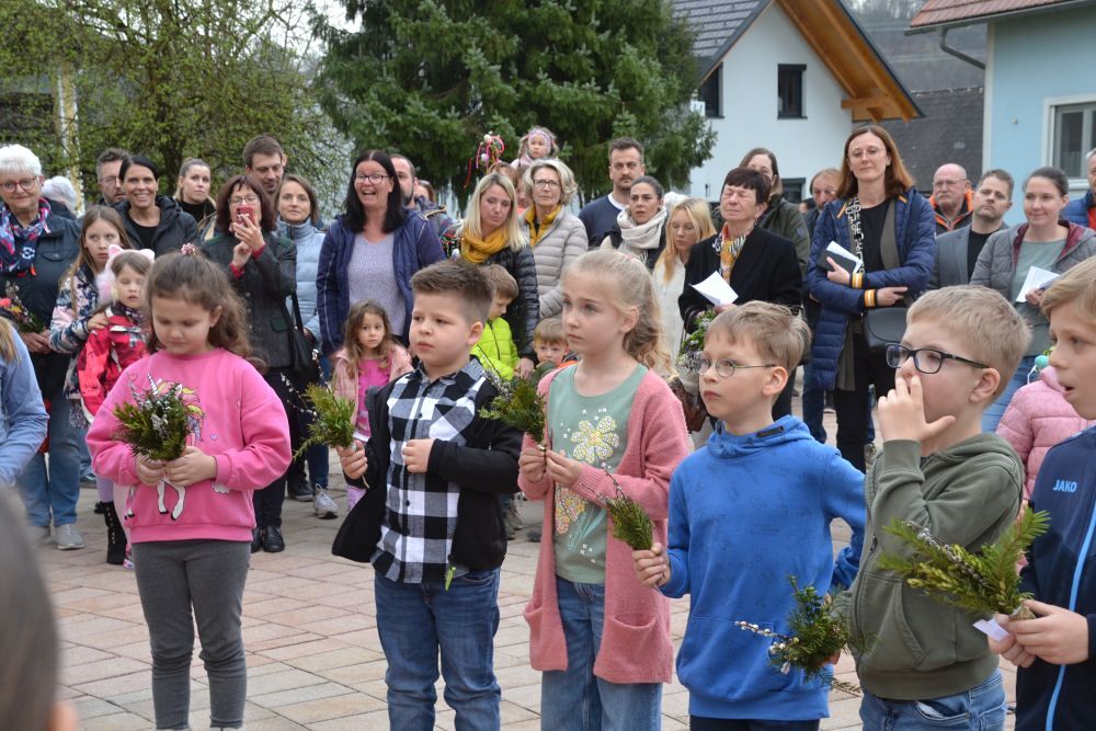 Donnerstag, 21. März 2024 - Kapelle Werndorf - Segnung der Palmzweige durch Pfarrer Claudiu Budau vor der Kapelle - Musik - Jugendkapelle Werndorf und Sr. Maria - Gottesdienst in der Kapelle mit Vorstellung der Werndorfer Erstkommunionkinder
