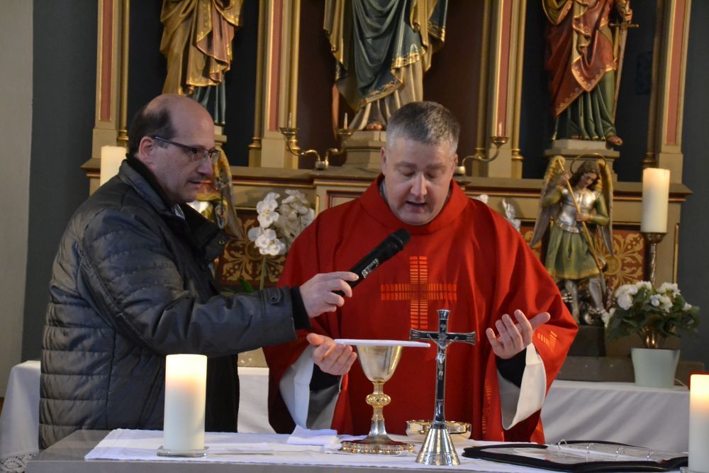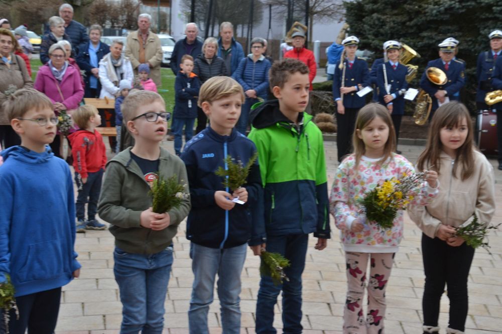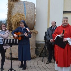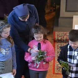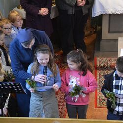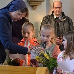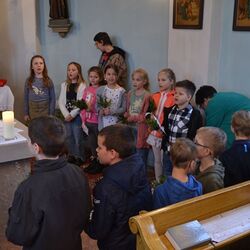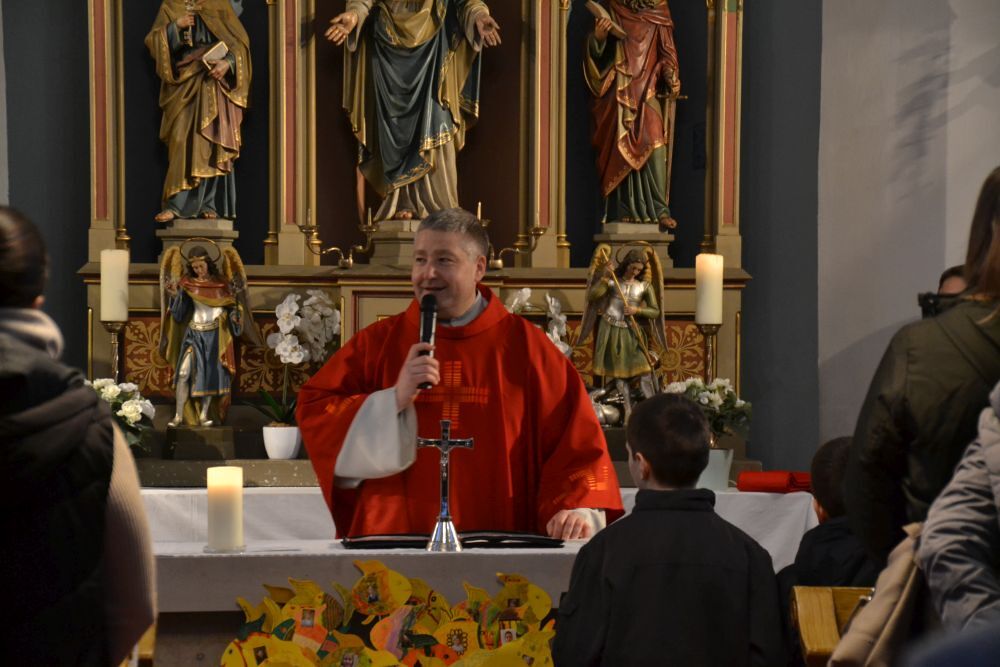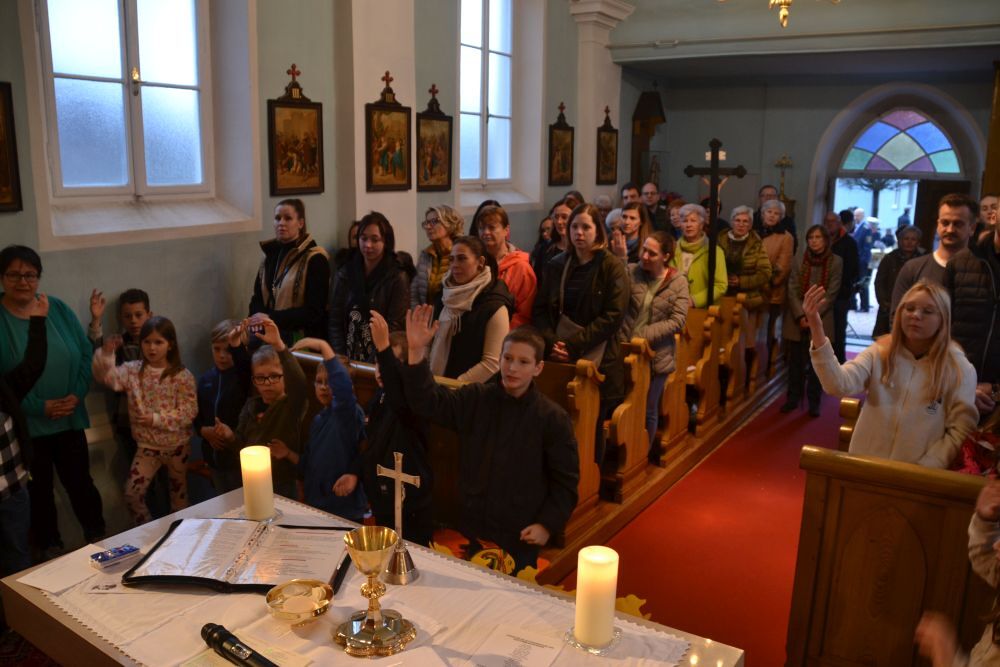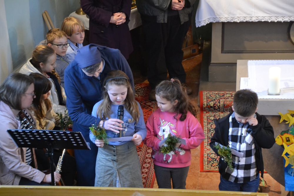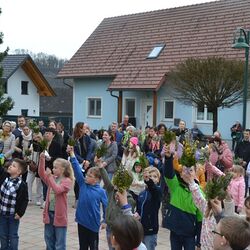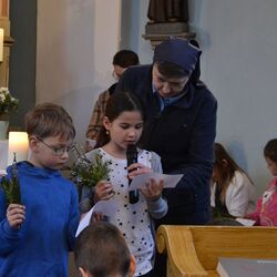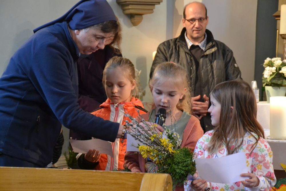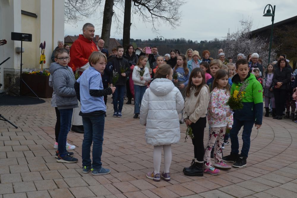 Donnerstag, 21. März 2024 - Kapelle Werndorf - Segnung der Palmzweige durch Pfarrer Claudiu Budau vor der Kapelle - Musik - Jugendkapelle Werndorf und Sr. Maria - Gottesdienst in der Kapelle mit Vorstellung der Werndorfer Erstkommunionkinder