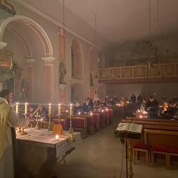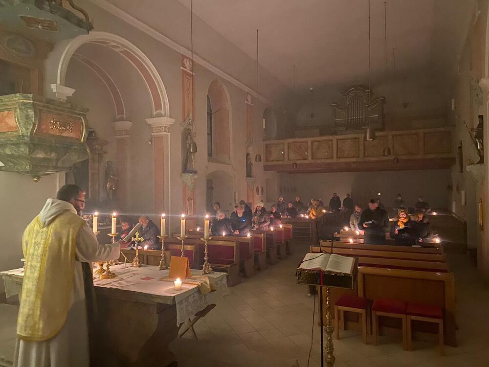 Nach der Heiligen Kommunion wurde die Altenmarkter Krippe das letzte Mal inzensiert, ein Gebet gesprochen und der Blasiussegen gespendet.