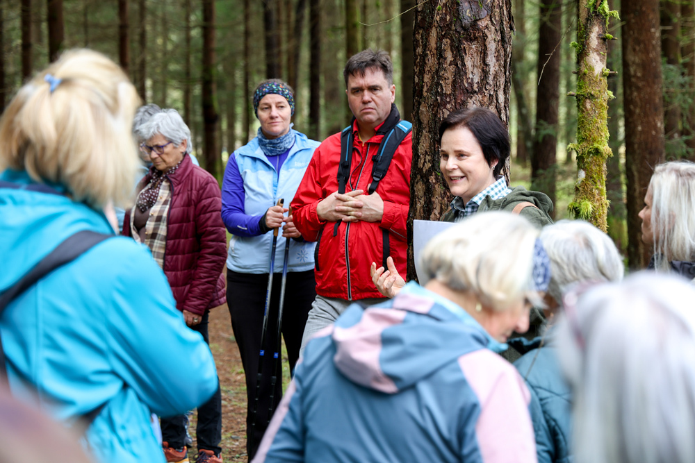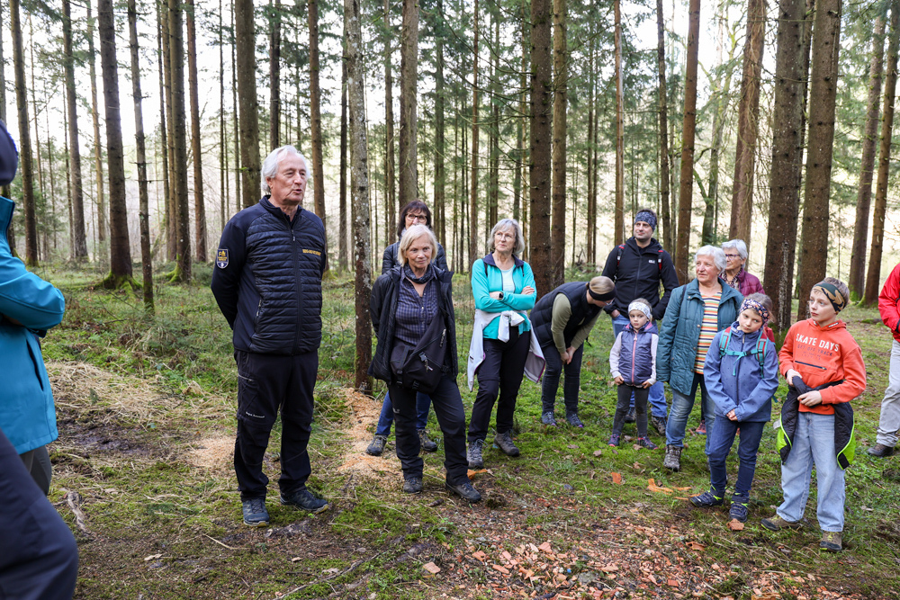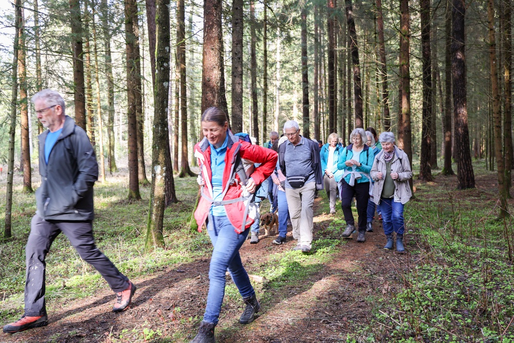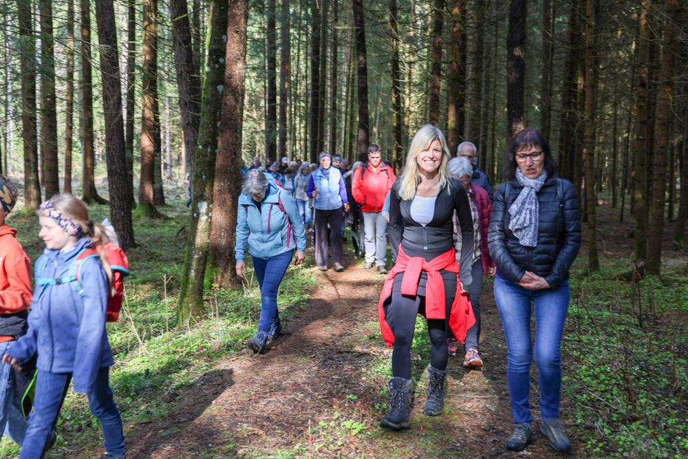 Bei strahlendem Sonnenschein trafen sich über 50 Naturbegeisterte am Sonntag, 30. März um 15:00 Uhr bei den Wundschuher Teichen. Auf dem Weg zum Woldteifl-Kreuz machten wir mehrmals Halt. So erzählten uns zwei Berg- und Naturwächter, ein Jäger sowie eine Försterin viel Interessantes über den Wald und wie sich der Frühling darin bemerkbar macht. Beim Woldteifl-Kreuz angekommen wartete eine kleine Stärkung auf uns. Natürlich durfte auch der spirituelle Aspekt nicht fehlen. Unsere Pastoralreferentin Ines Kvar gestaltete eine kurze Andacht beim Kreuz, bevor wir uns wieder auf den Weg zum Ausgangspunkt machten.