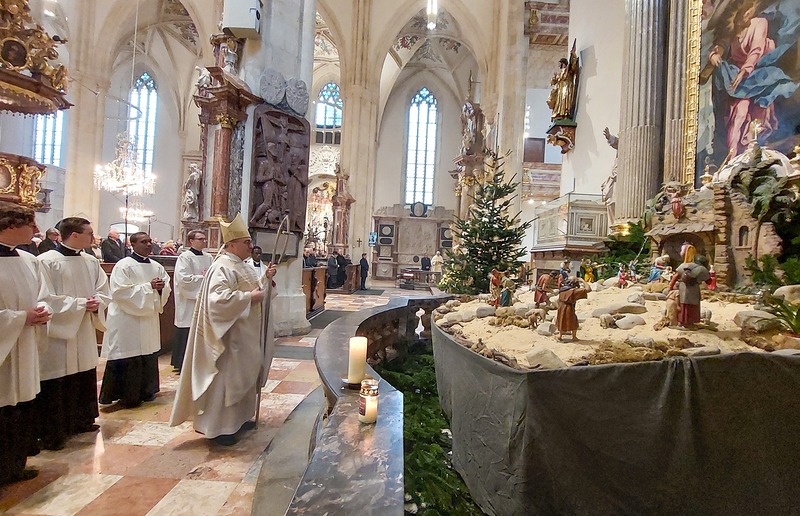 Der Friede, den Weihnachten uns bringt, ist aber nicht bloß Waffenstillstand, so sehr dieser auch heuer erhofft wird. Gottes Friede beruht auf einem speziellen Umgehen des Menschen mit der Welt, also mit der Schöpfung, die uns umgibt. Wir, ob klein ob groß, jung oder alt, sind aufgrund der Menschwerdung Gottes herausgefordert, unser gemeinsames Haus "Erde" wieder neu als Seine Schöpfung zu betrachten. Wir sind herausgefordert, die Schöpfung zu hüten, damit sie auch nachfolgenden Generationen lebenswert übergeben werden kann. Denn sie ist schutzbedürftig, wie es auch der Mensch ist - geboren oder ungeboren, entfaltet oder beeinträchtigt. Gott ist einer von uns geworden, damit die Welt um uns nicht mehr gottlos ist, damit Hoffnung da ist für alle. Dafür hat er sich selbst hineingesprochen in diese Welt. Wir haben es zuvor vom Evangelisten Johannes gehört.