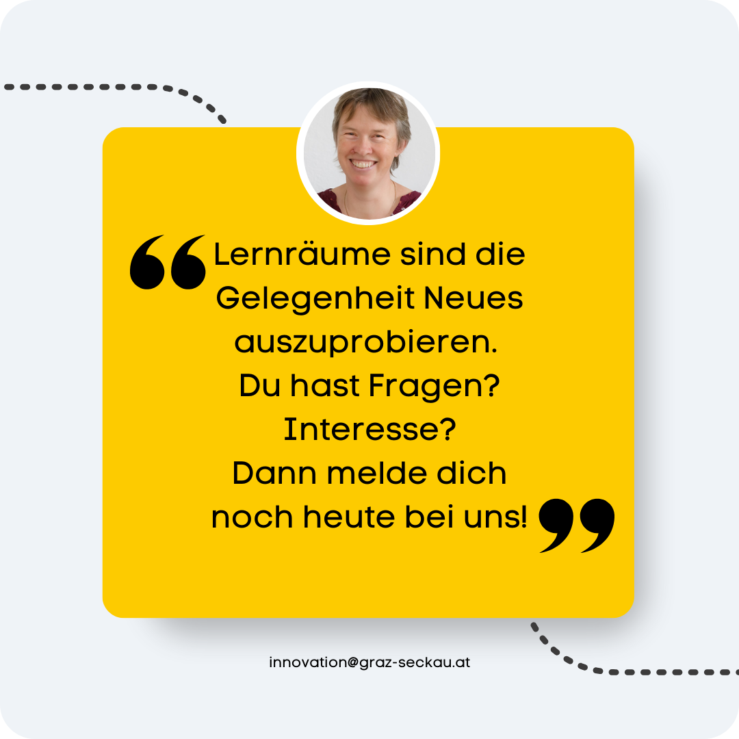 Fachlich verankert ist dieser Lernraum im Prozessbereich Steuerung & Qulität (Manuela Reicht) und im Prozessbereich Innovation & Entwicklung | Innovation (Tamara Strohmayer). |