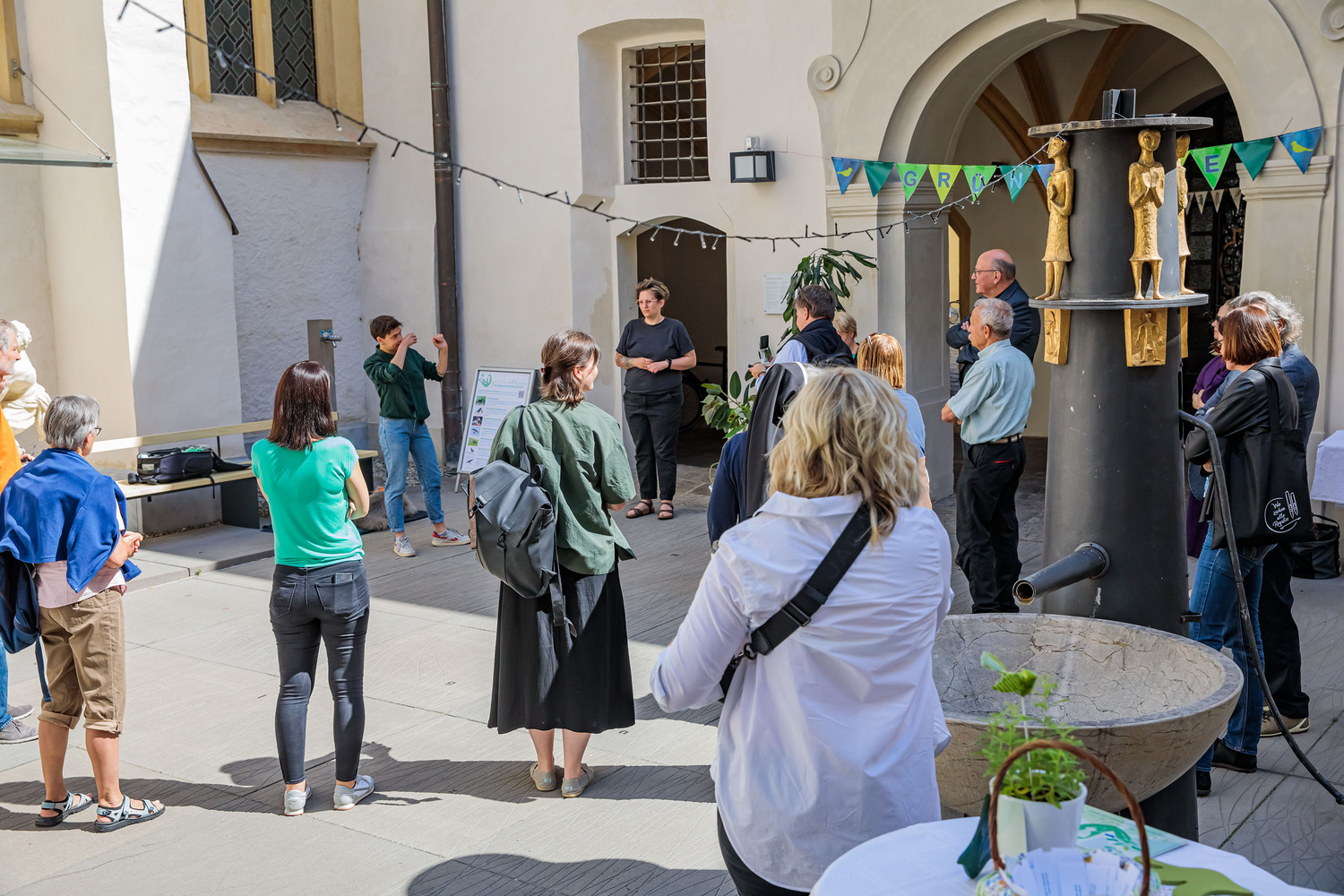 Und dass durch diese Projektidee auch eine nachhaltige Neugestaltung des Brunnenhofs (mehr Sitzgelegenheiten, Grünpflanzen, Aktivierung des alten Ziehbrunnens aus dem Mittelalter) angeregt werden konnte, die von den Besucherinnen und Besuchern sofort positiv angenommen wurde. (Gertraud Schaller-Pressler)