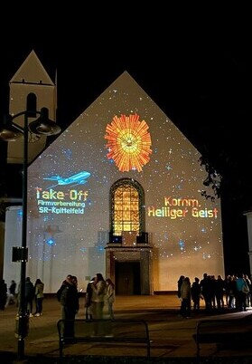 Mit Hilfe von Laptop, Beamer und Bilder, bzw. PowerPoint Präsentation haben wir thematisch passende Bilder (auch bewegte) an die Kirchenwand projiziert.