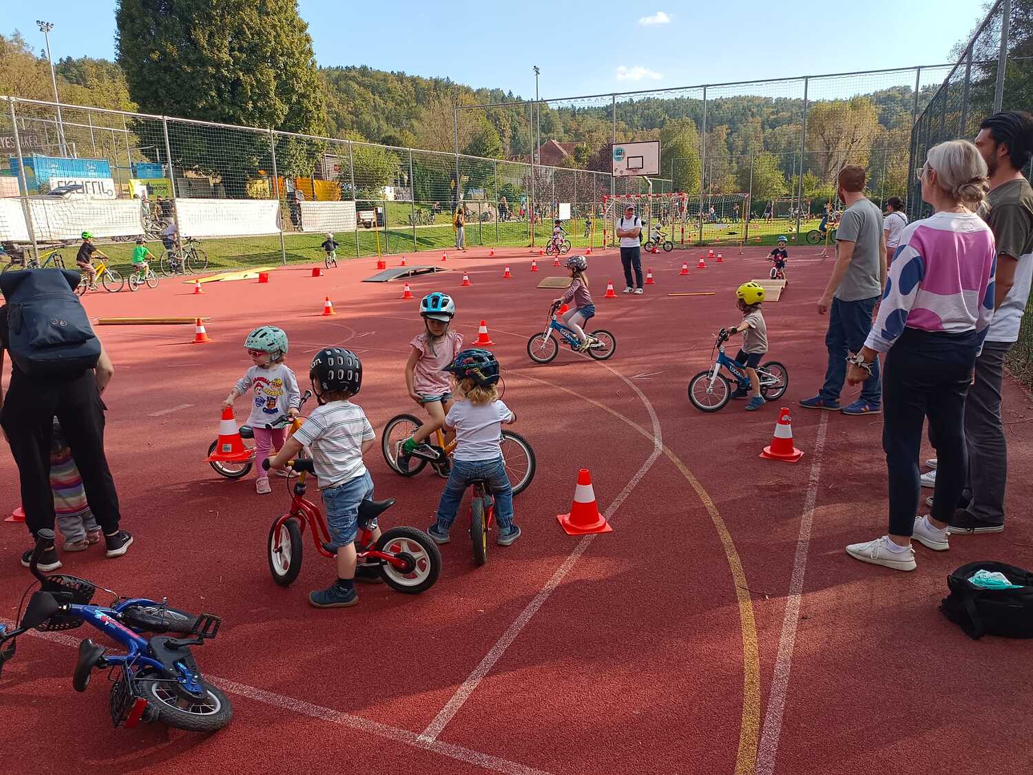Im Gegensatz zum schulischen Verkehrssicherheitstraining wird auch auf Schotter und Wiese geübt und auch im Gelände Übungen absolviert, um Sinne zu schärfen, Vertrauen zu finden und Fahrkönnen + Erlerntes zu festigen!