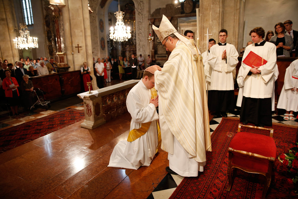 "Allmächtiger Vater, wir bitten dich, gib diesen deinen Dienern die Würde des Preistertums. Erneuere in ihnen den Geist der Heiligkeit. Das Amt, das sei aus deiner Hand, o Gott, empfangen, die Teilhabe am Priesterdienst, sei ihr Anteil für immer. So sei ihr Leben für alle Vorbild und Richtschnur.