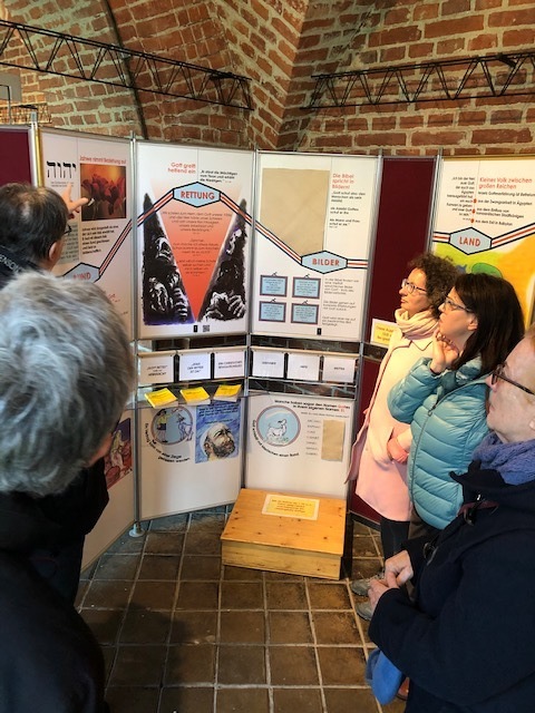 16 Personen wurden von Helmut Tschautscher vom Bibelwerk, der auch beim Aufbau geholfen hatte, in den Ausstellungsbegleitdienst eingeschult.