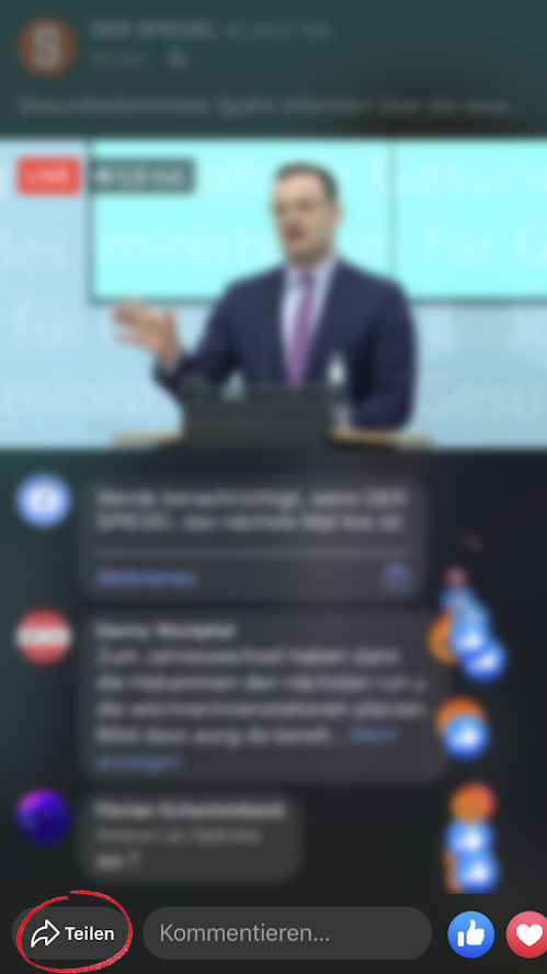 Und so teilen Sie den Livestream auf anderen Seiten: