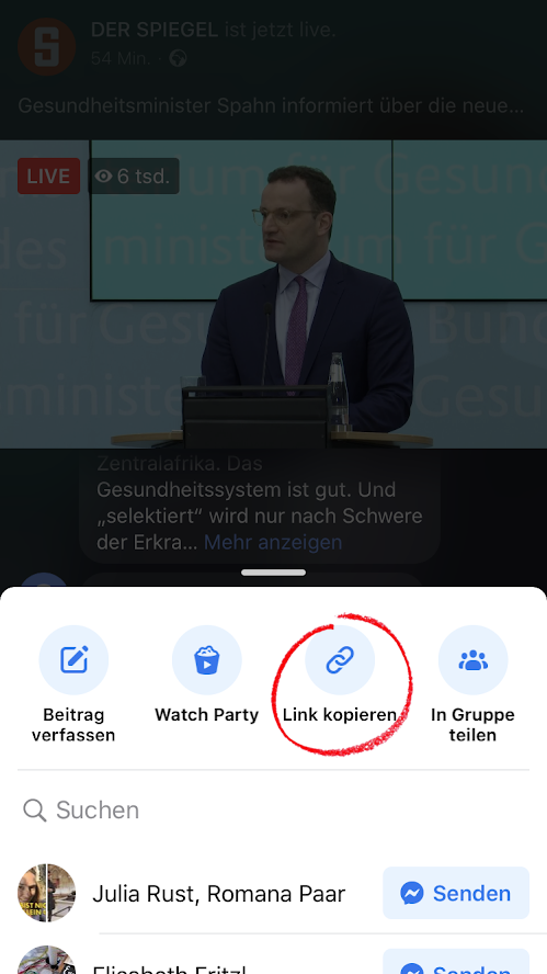 Wenn Sie die Livestream-Ansicht am PC geöffnet haben, können Sie den Link auch aus der Adresszeile kopieren.