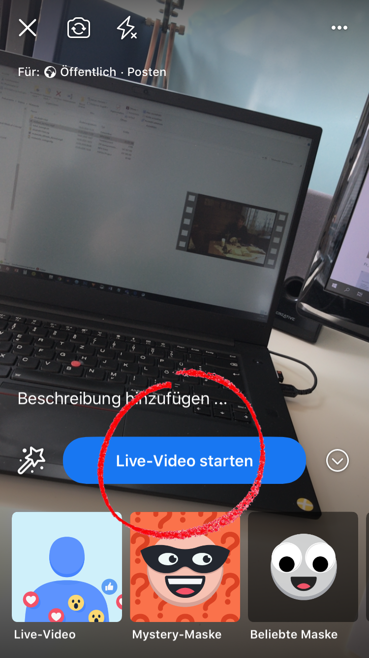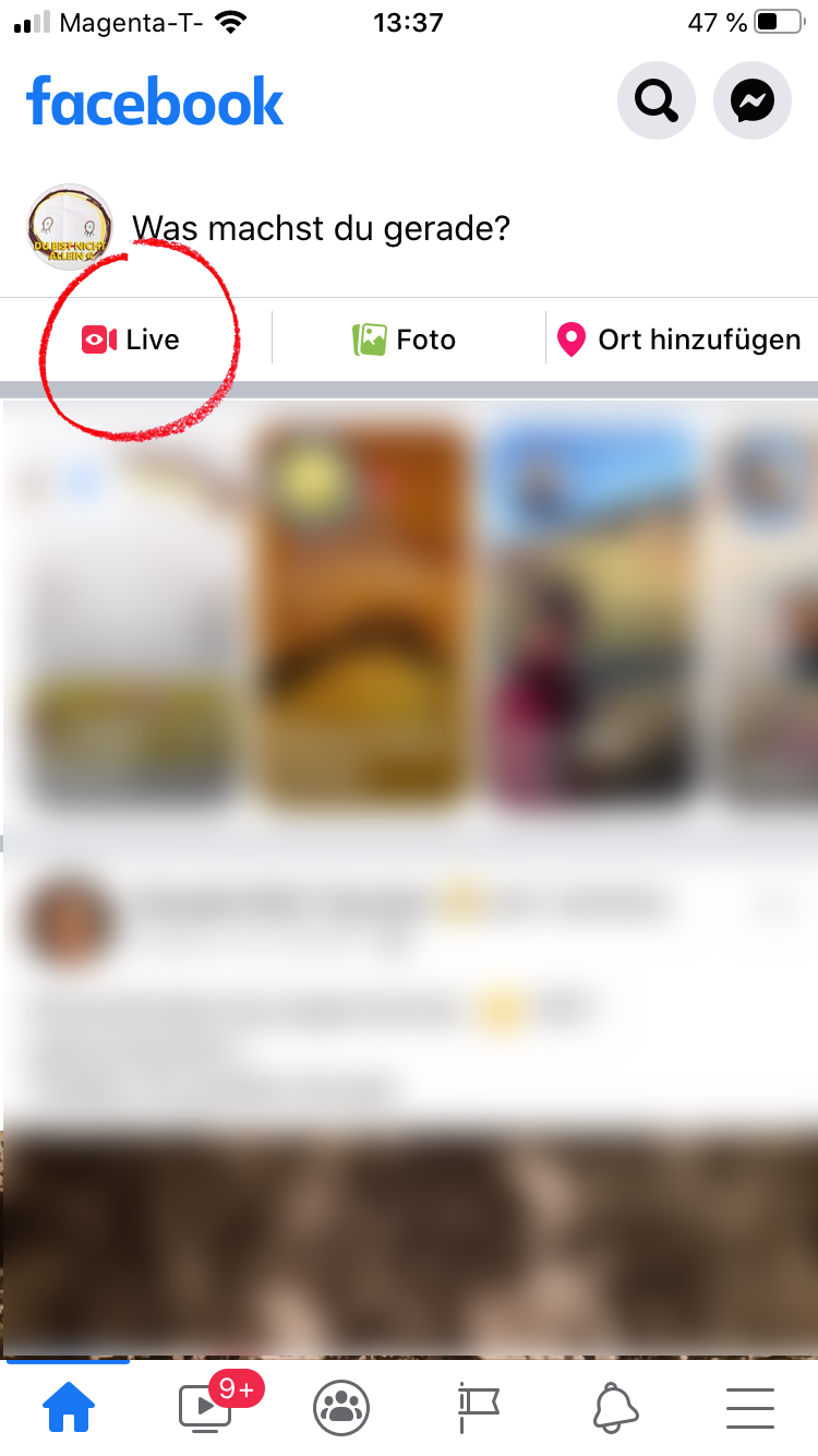 Wählen Sie "Live": (links im Privatprofil, rechts auf einer Seite)