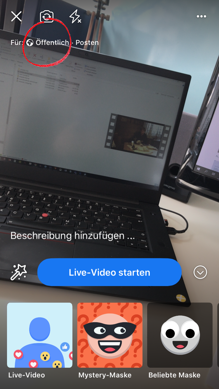 Wählen Sie, ob Ihr Live-Video öffentlich oder privat (zB nur für Facebook-Freunde) sein soll.