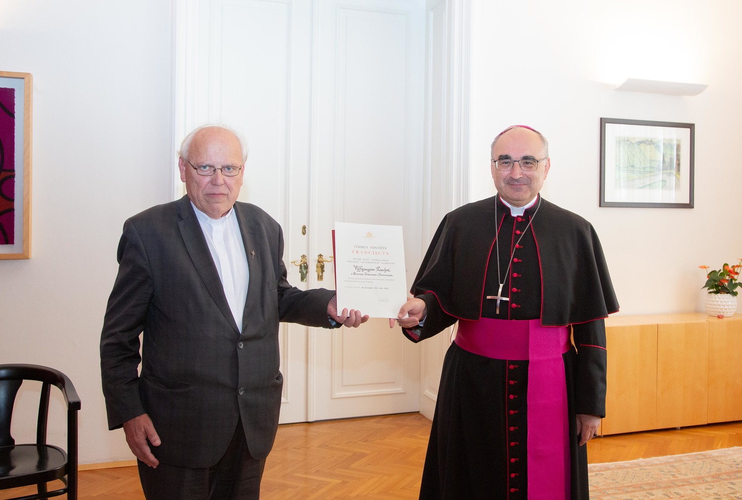Der 1996 im Grazer Dom zum Priester geweihte Pfarrer Anton Neger wurde zum bischöflichen Konsistorialrat ernannt. „Du erfüllst Leitungsaufgaben mit Umsicht und bindest gleichzeitig viele in die Mitgestaltung ein“, sagt Bischof Wilhelm bei der Verleihung. Ebenso Konsistorialrat ist der neue Abt von Seckau Johannes Fragner OSB. Er sei tief verwurzelt in der Gegenwart Gottes und habe vielfältige spirituelle und pastorale Impulse gesetzt.