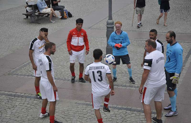 Die acht Spieler des Teams "rot-weiß-rot" kommen aus sozialen Projekten für Alkohol- und Drogensüchtige, zudem sind auch Asylwerber aus Afghanistan und Syrien dabei. Organisiert wurde die Teilnahme Österreichs von der Caritas der Diözese Graz-Seckau, als Teamchef fungierte der frühere Nationalteamspieler Gilbert Prilasnig. Er und sein achtköpfiges Team haben hohe Erwartungen an das Turnier: "Ich finde, dass wir dieses Jahr eine Mannschaft haben, von der ich mir auch sportlich einiges erwarte. Deshalb ist meine Vorfreude auch schon dementsprechend groß."