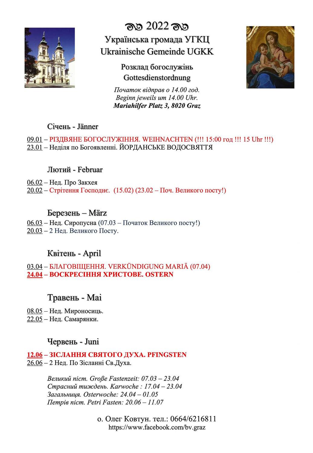 Die Gottesdienste der ukrainischen Gemeinde in Graz sind am Foto am Ende dieses Artikels ersichtlich.