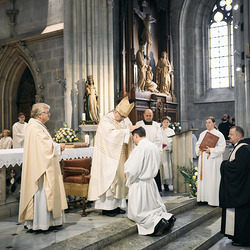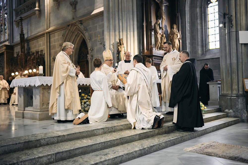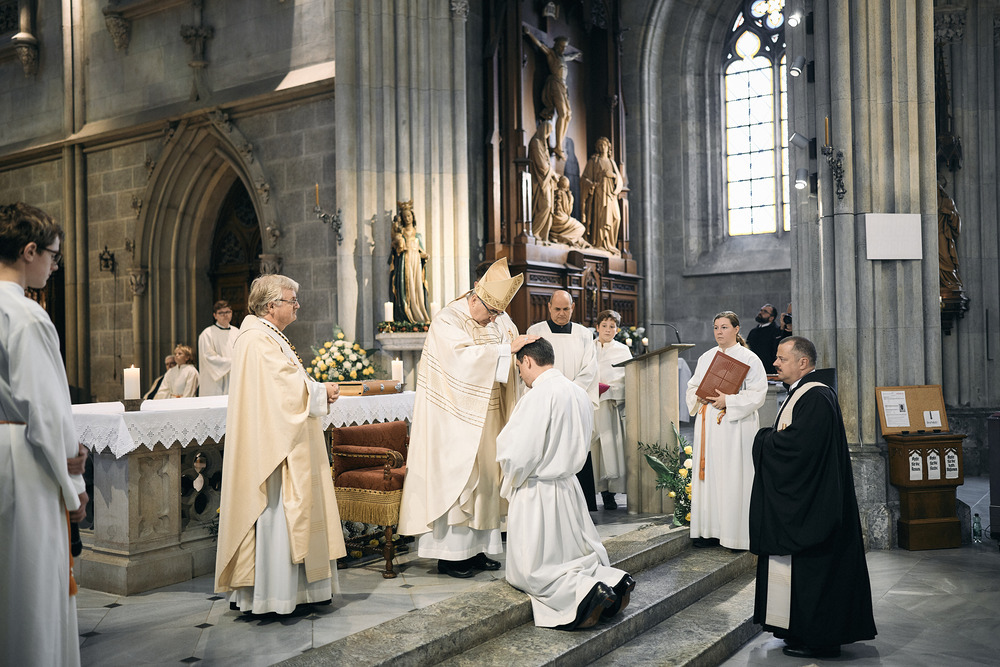 Am Weltmissionssonntag, dem 23. Oktober, weihte Diözesanbischof Wilhelm Krautwaschl Frater Matthäus Konieczny aus dem Benediktinerstift Admont in der Stiftskirche zum Diakon. In seiner Predigt hob der Bischof die richtige Wahrnehmung des eigenen Standorts hervor: Wenn wir um Gott wissen, wissen wir, dass niemand von uns der Nabel der Welt ist. Als Ebenbild Gottes drückt die Liebe das menschliche Leben am besten aus. Der Bischof sagte zu Frater Matthäus: „Lebe als einer, der sich in den Dienst genommen weiß. Lebe das Leben, indem du es für andere lebst. Ich wünsche dir, dass du immer tiefer in das dienende Dasein eintauchst.“