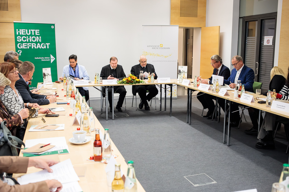 Wie die Steiermark in Zeiten großer Herausforderungen gestalten? Die Verantwortung von Politik und Kirche und gemeinsame Handlungsfelder waren am 14. November Themen einer multilateralen Gesprächsrunde der im Landtag vertretenen Parteien mit Vertretern und Vertreterinnen der Katholischen Kirche Steiermark.