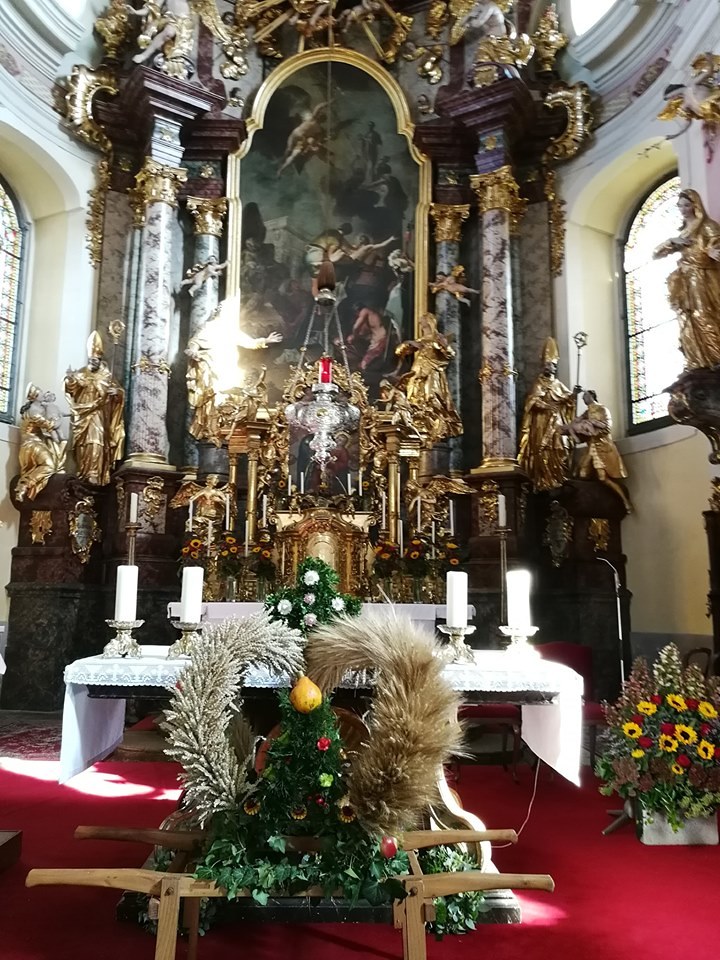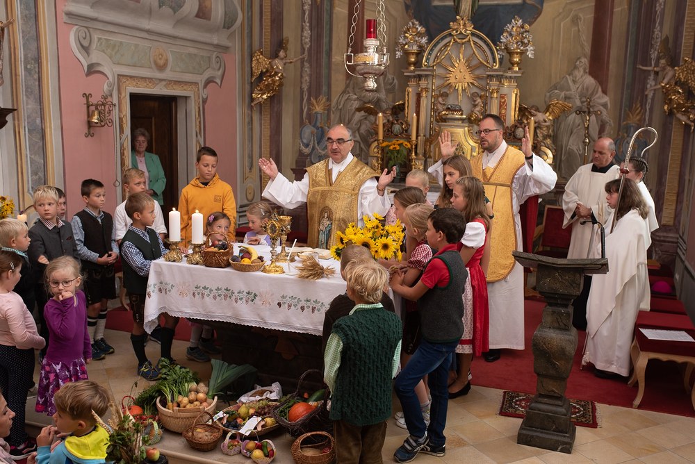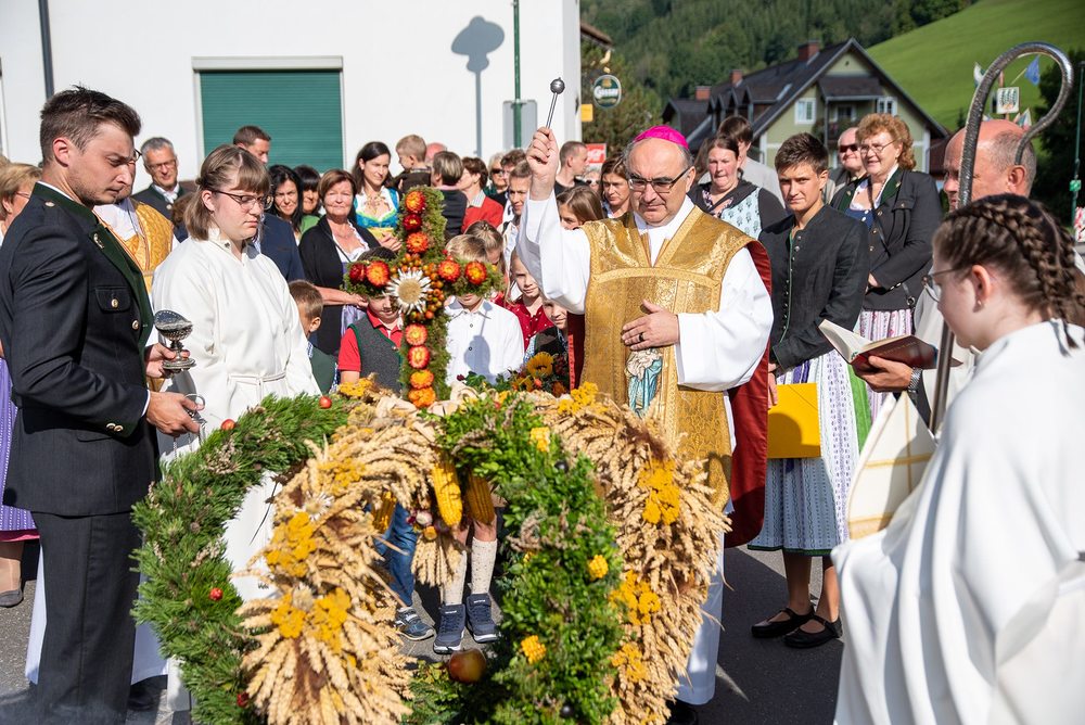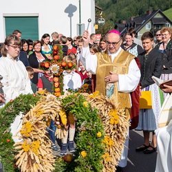 Erntedank: überall in der Steiermark wird in diesen Wochen dieses Fest begangen. Am 16. September 2019 feierte Bischof Wilhelm Krautwaschl Erntedank in Wald am Schoberpaß.