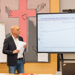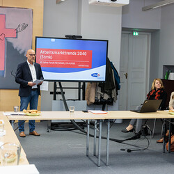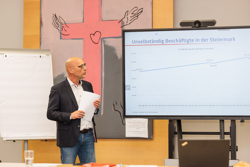 Anlässlich des 35-jährigen Bestehens hat der Fonds für Arbeit und Bildung zu einer erweiterten Kuratoriumssitzung mit Bischof Wilhelm Krautwaschl und einem Festvortrag von AMS Landesgeschäftsführer Karl-Heinz Snobe über „Arbeitsmarkttrends 2040“ eingeladen.