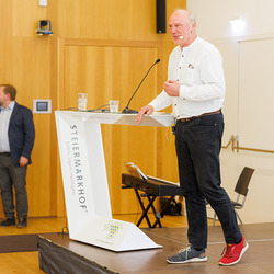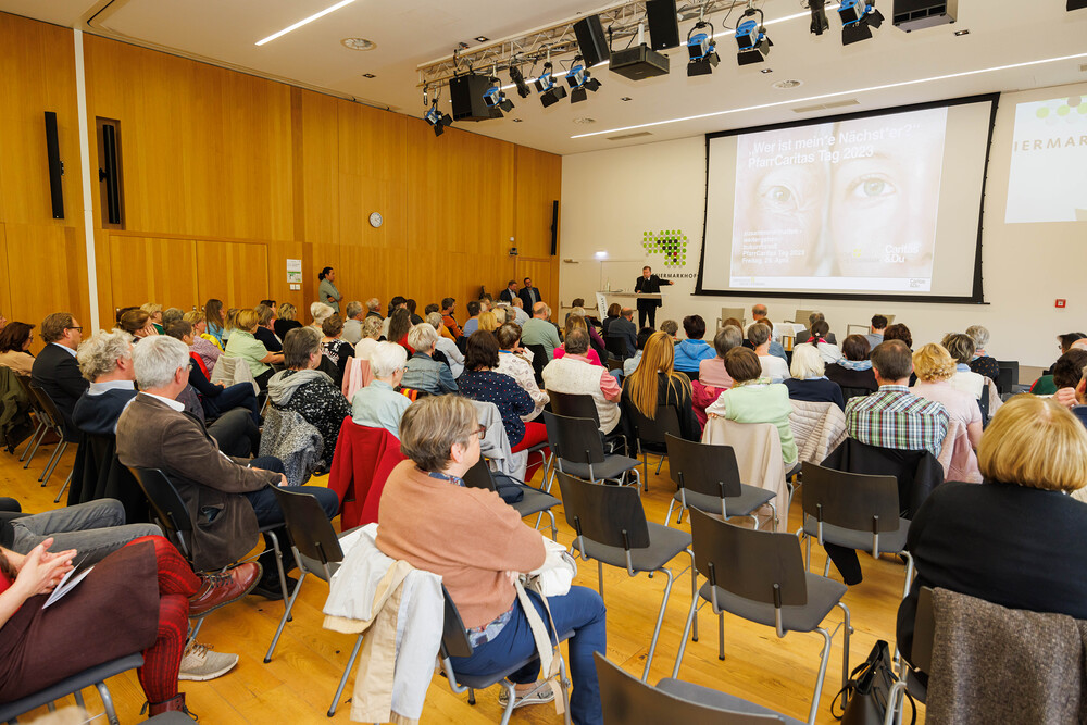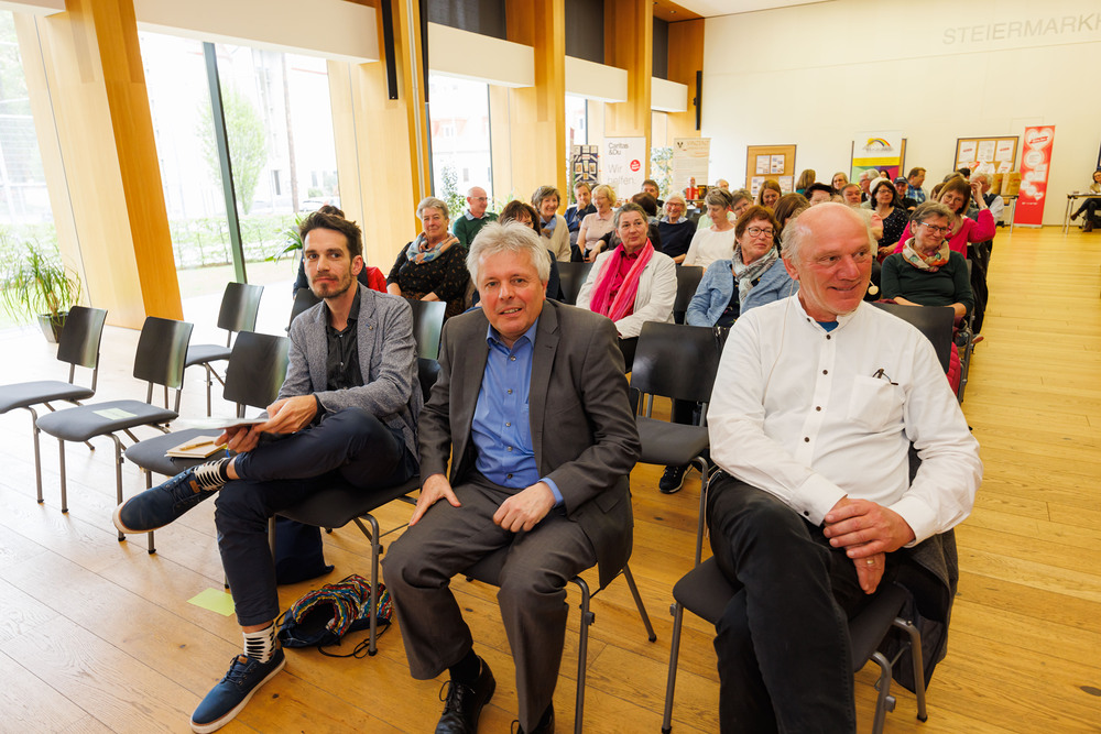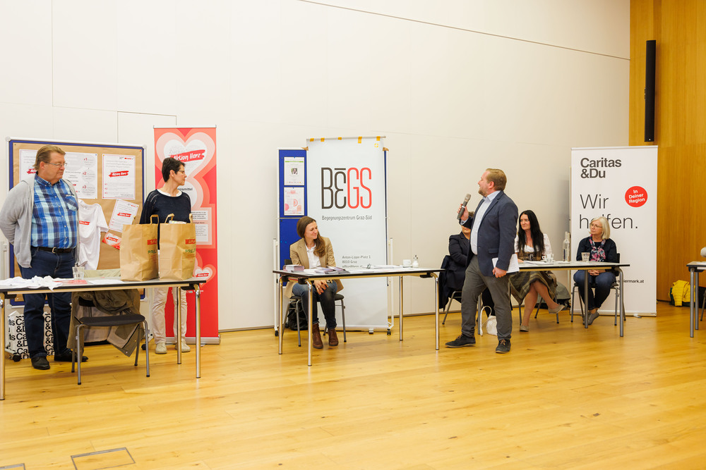 Im Steiermarkhof in Graz waren alle haupt- und ehrenamtlich Mitarbeitenden von Pfarrcaritas bzw. Sozialkreisen, Sozial-Verantwortliche, Haussammler:innen, Mitarbeitende in sozialen Projekten sowie alle sozial Interessierten eingeladen zu Podiumsgespräch und Austausch.