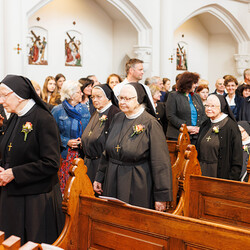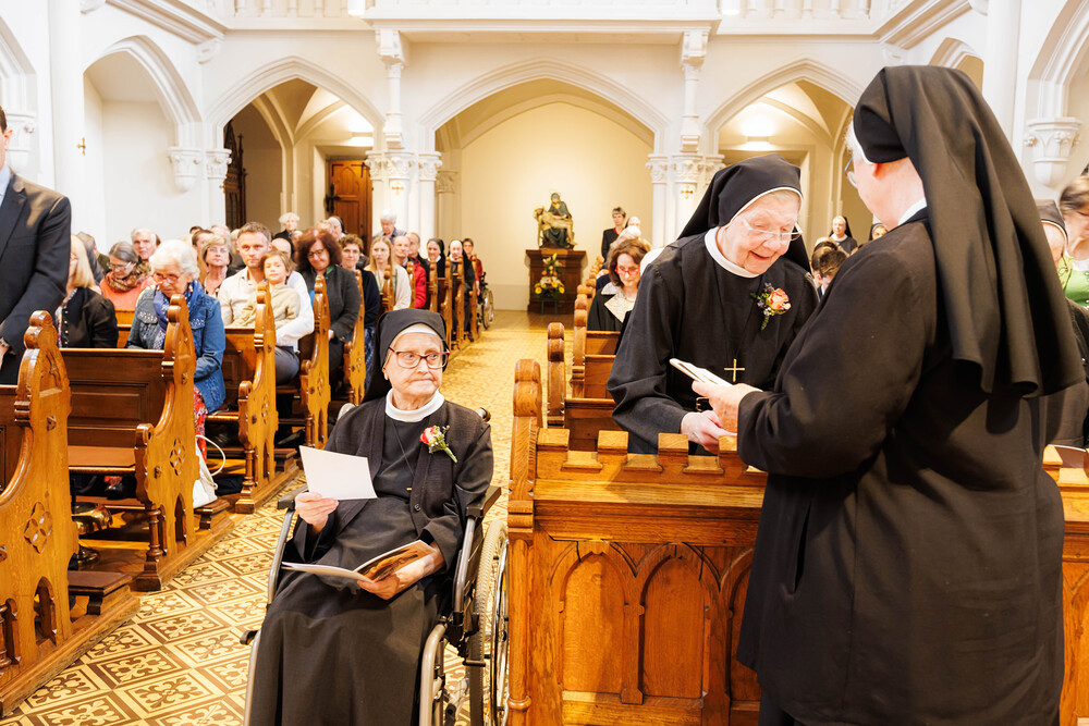 Mit einer Festmesse am 29. April 2023 feierten Melitta, Maria Agnes, Domitilla, Inigo, Maria Andrea, Maria Bosco, Stefana und Mary Francis in Graz ihre Ordensjubiläen 50, 60 bzw. 70 Jahre, im Kreis ihrer Mitschwestern.