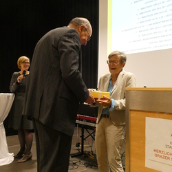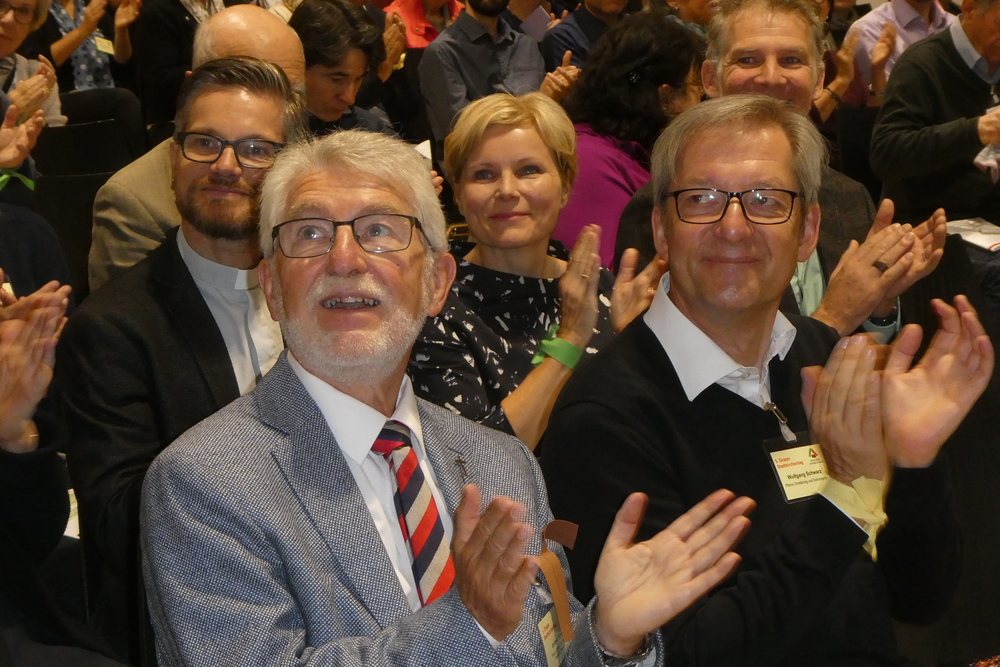 Ein emotionaler Moment war die Verabschiedung von Waltraud Schaffer als Leiterin des Themenschwerpunkts „Spiritualität“ in der Stadtkirche. Stadtpfarrpropst Christian Leibnitz dankte ihr herzlich für ihre kompetente Aufbauarbeit und die wesentliche Rolle, die sie in der Vorbereitung dieses Stadtkirchentags übernommen hatte.