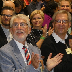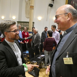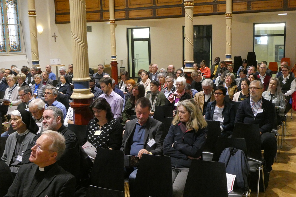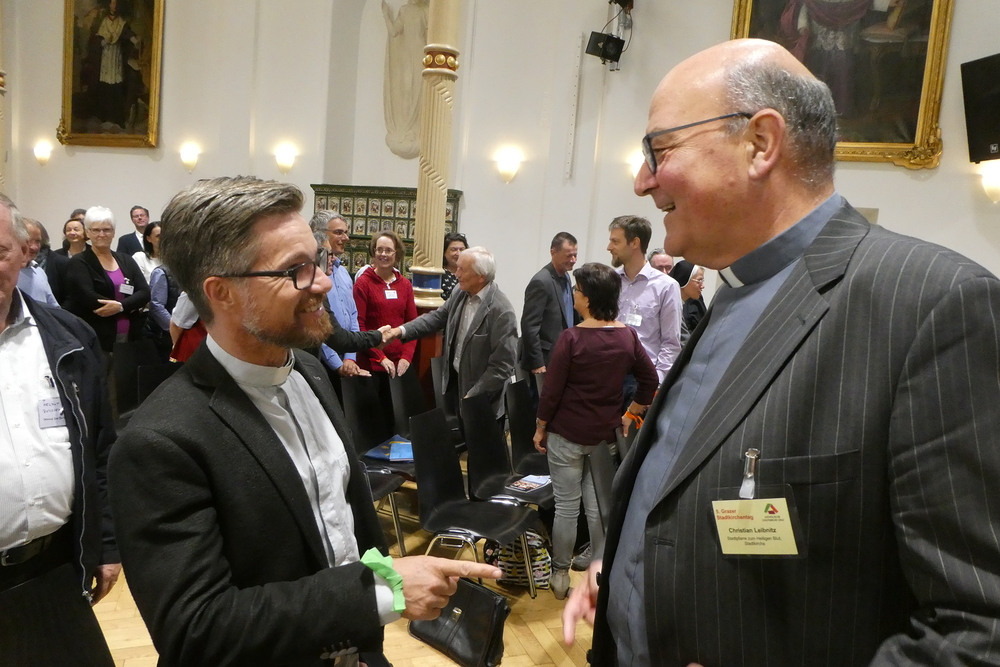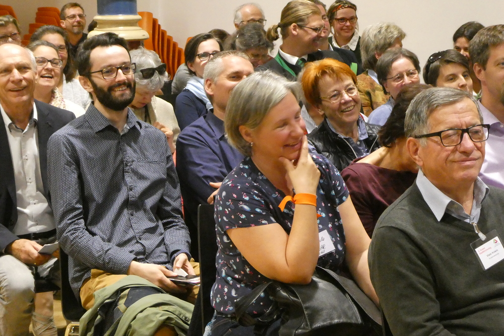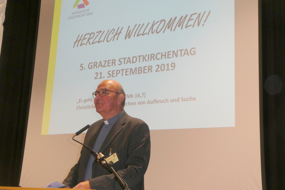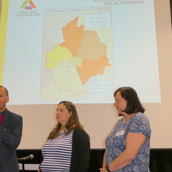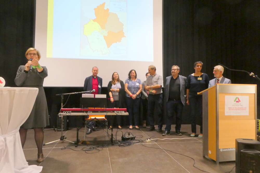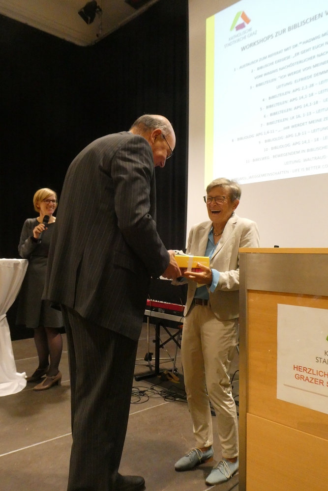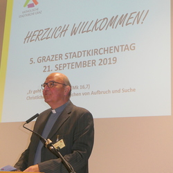 „Er geht euch voraus…“ war das Motto des 5. Grazer Stadtkirchentags im Augustinum. In ihrem Vortrag vor 120 Mitarbeiterinnen und Mitarbeitern der Grazer Pfarren und katholischen Einrichtungen ging die deutsche Theologin Hadwig Müller auf die besondere Rolle der Bibelarbeit ein: Sie sei „niemals einem pastoralen Ziel unterzuordnen“, vielmehr müssten die Teilnehmenden an der Bibelarbeit selbst im Mittelpunkt der Beschäftigung mit der Bibel stehen. Sie berichtete dabei auch von Erfahrungen aus Frankreich, wo Gruppen regelmäßig gemeinsam ein biblisches Buch lesen. Bei diesen Gruppen seien Kirchlichkeit und christlicher Glaube gerade keine Voraussetzung, vielmehr „das unbestimmte Verlangen, dem Geheimnis des eigenen Lebens näher zu kommen“ sowie „die Fähigkeit zu hören und die Kunst, nicht in Schablonen zu sprechen“. Eine Möglichkeit dieser biblischen Vertiefung boten die anschließenden Workshops. Ein Informationsblock über die Evaluation der Stadtkirchenarbeit beendete den Tag.