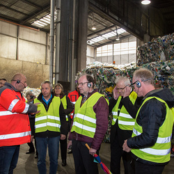 Am „Welttag für menschenwürdige Arbeit“ (7. Oktober) besuchte eine zwölfköpfige Delegation der Katholischen Kirche Steiermark, angeführt von Bischofsvikar Heinrich Schnuderl und der Generalsekretärin der Katholischen Aktion Steiermark, Anna Hollwöger, die Hightech-Sortieranlage für Leichtverpackungen der Saubermacher Dienstleistungs AG in der Grazer Puchstraße.