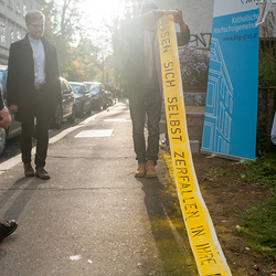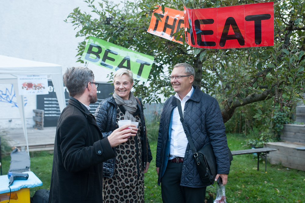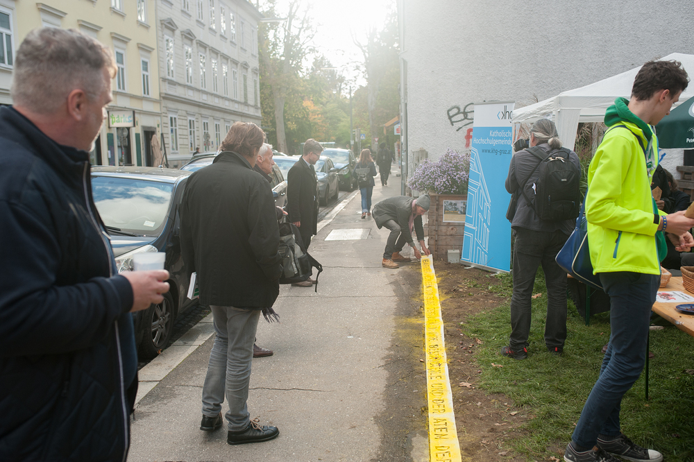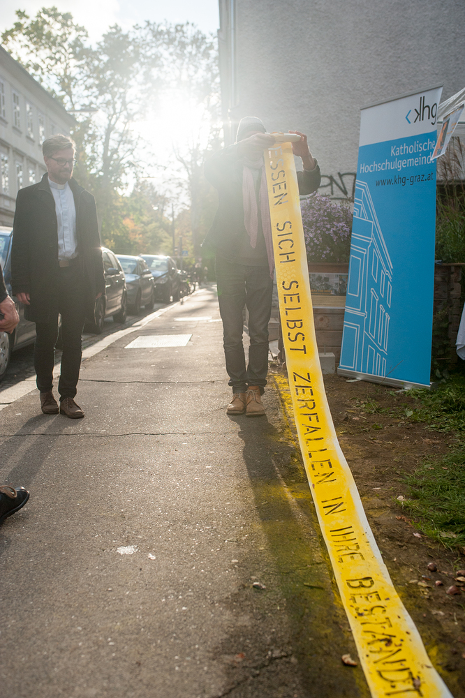 Umrahmt von den flashigen Beats von DJ Chris Kent und von Maronibrater und Schankspezialist Marcus Freidl bestens betreut, dekonstruierte Markus Wilfling mit seiner Intervention "Barrierenfrei" die Begrenzung der nun abgetragenen Zaunelemente an der Grundstücksgrenze beim PARADISE L. in der Zinzendorfgasse. Das PARADISE L. ist und bleibt barrierenfrei. "Come in, we're open!" heißt es also auch in Zukunft in diesem kleinen Stadtparadies.