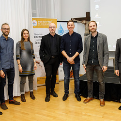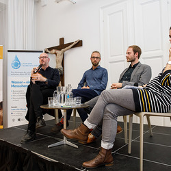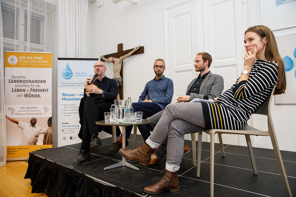 Der am Potsdam-Institut für Klimafolgenforschung wirkende Wissenschaftler vergaß dabei nicht, konkrete Handlungsfelder – etwa innovative Bewässerungsformen – aufzuzeigen, die auch in Zukunft ein gutes Leben auf dieser Erde ermöglichen können. Mit einem persönlichen, das Evangelium mitreflektierenden Kommentar reagierten die Theologiestudierenden Sonja Edlinger und Michael Tschauko auf das Gehörte und Standard-Journalistin Lisa Mayr moderierte danach eine spannende und niveauvolle Podiumsdiskussion. „Es gibt keine Ausreden“, resümierte auch Experte Gerten, die Wege und Methoden für eine nachhaltigere Lebensweise lägen auf dem Tisch, er plädierte dabei für die „goldene Mitte“ – was aber die radikale Option für die Lehmhütte nicht ausschließt. Regionaler, gemeinschaftlicher und kleinteiliger – diese keineswegs neuen Ansätze, so Moderatorin Mayr, gälte es wieder aufzugreifen.