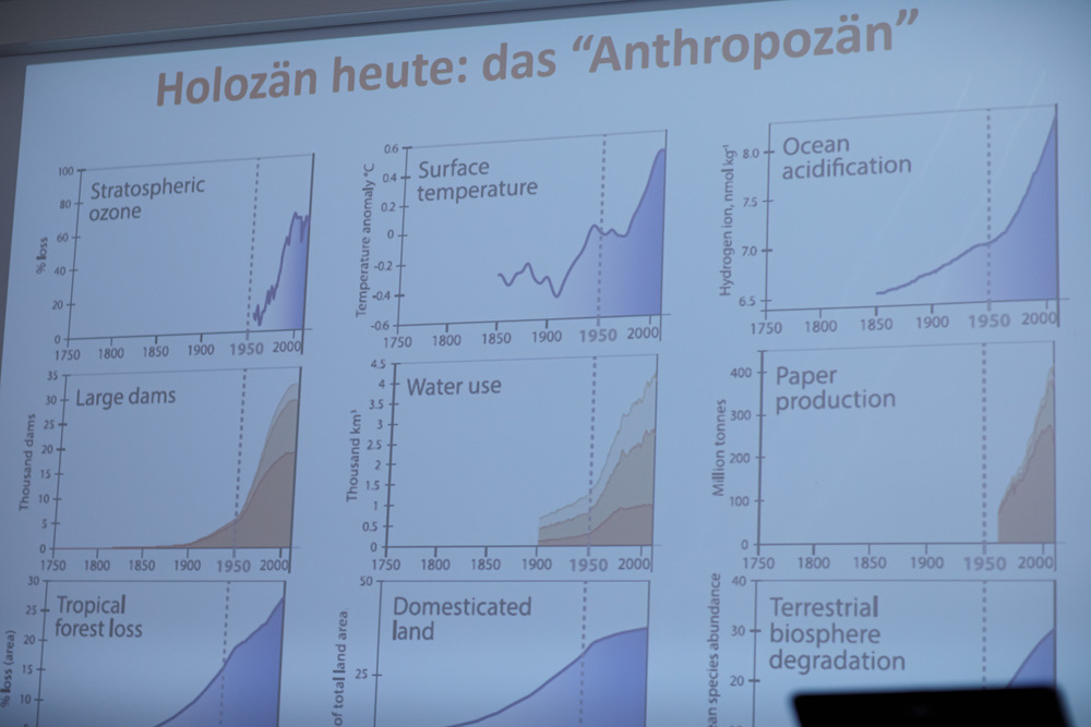 „Müssen wir nun alle Veganer in Lehmhütten werden?“ – diese provokante Frage stellte eine junge Frau aus dem Publikum beim gut besuchten Eröffnungsvortrag der Katholischen Hochschulgemeinde im Quartier Leech (QL) an den Klima- und Wasserforscher Dieter Gerten und das Podium. Auslöser für diese Frage war der zum QL-Jahresthema „Heiße Zeit“ passende Impulsvortrag, in dem Gerten das (beunruhigende) Konzept der planetaren Grenzen und der damit verbundenen Notwendigkeit zur ökologischen Umkehr skizzierte.