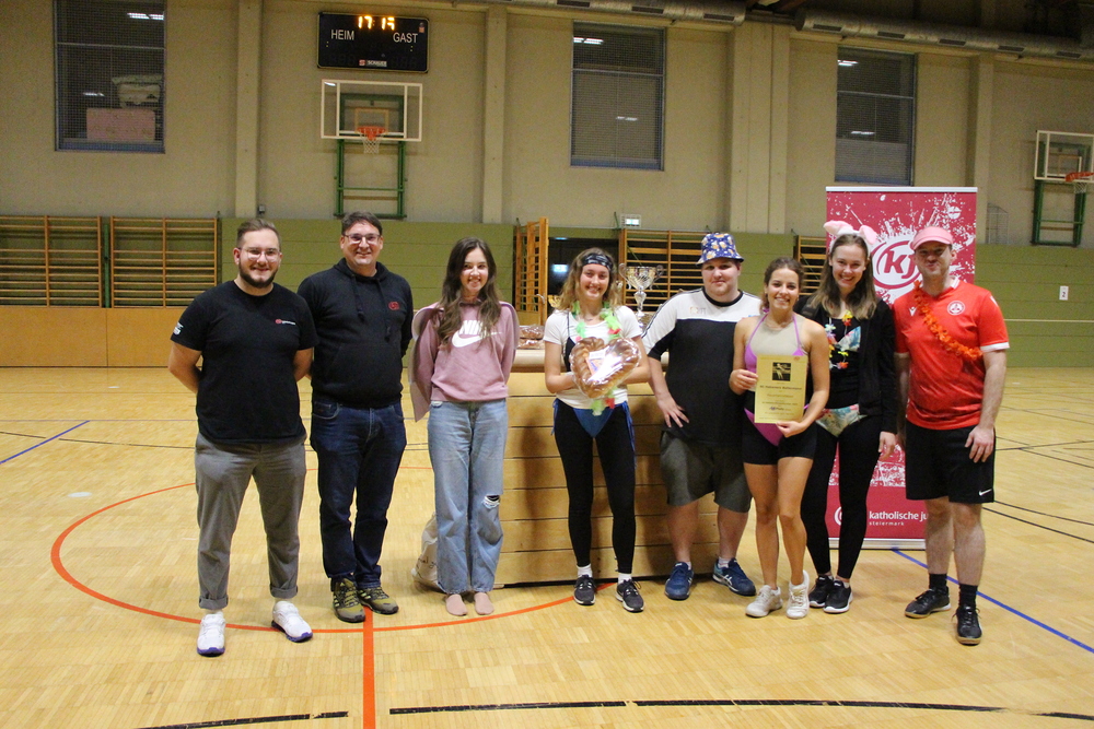 Weitere Preise wurden diesmal vergeben an die besten Fans aus Heiligenkreuz am Waasen, welche unermüdlich und lautstark alles gaben, um ihr Team (oder besser gesagt gleich 3 davon) nach vorne zu treiben, sowie an die Spieler:innen von „SC Habanero/Ballerina/Ballermann“ für das Team mit den besten Verkleidungen. Das „Gschnas in Gnas“ hatte somit auch seine würdigen Vertreter:innen in der Kostümwertung. Auch alle weiteren Teams dürfen sich ob ihrer Leistungen als Gewinner:innen sehen. Und die Freude auf das nächste Turnier war in den Gesichtern der Spieler:innen schon abzulesen.