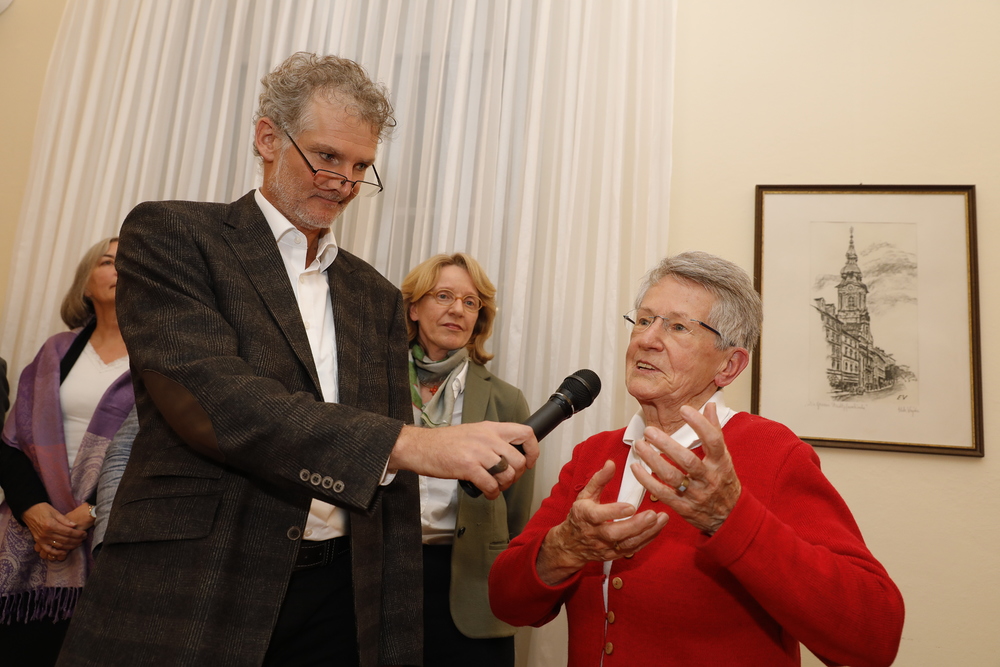 Gemeinderätin Sissi Potzinger richtete Glückwünsche von Bürgermeister Siegfried Nagl aus und erzählte, dass sie die bunten Bibelverse, die vor dem Kircheneck zur freien Entnahme angeboten werden, gerne mitnimmt.