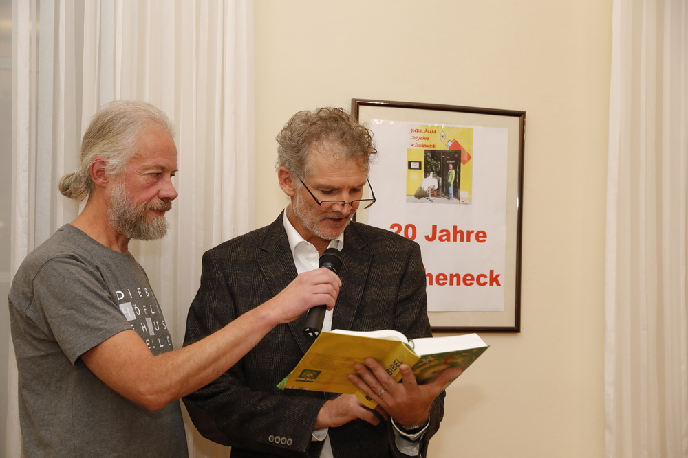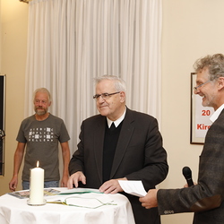 Zum Abschluss wurde noch eine „20 Jahre Kircheneck“-Torte angeschnitten. Der Abend klang mit Buffet und Gesprächen begleitet von der „Bischöflichen Hauskapelle“ feierlich aus.