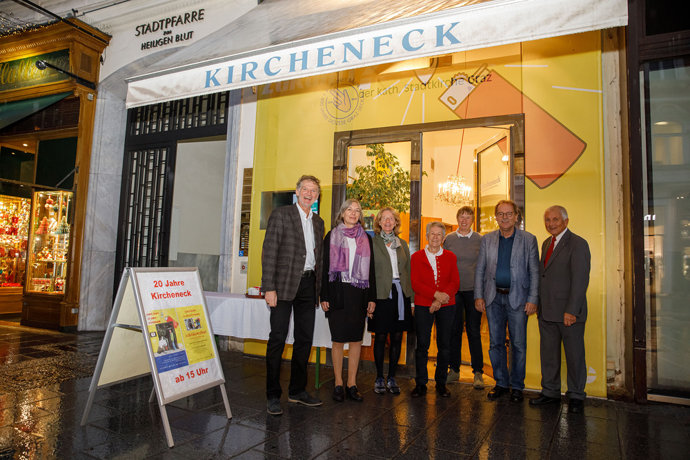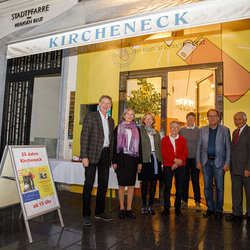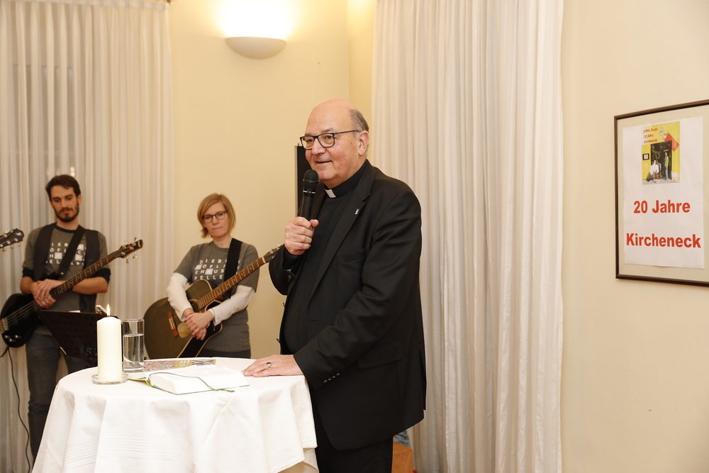 Bischofsvikar Heinrich Schnuderl, der seinerzeit die Öffnung des Kirchenecks initiierte, erzählte von der Entstehungsgeschichte des Kirchenecks, das – angepasst an die räumlichen Anforderungen eines Lokals in einer Einkaufsstraße – nach wie vor das Ziel hat, den Menschen auf Augenhöhe zu begegnen.