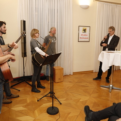 Bereits tagsüber wurde – trotz Regens – mit Maroni, Traubensaft und Glühwein in und ums Kircheneck gefeiert, am Abend fand im Stadtpfarrhof ein Festakt statt.