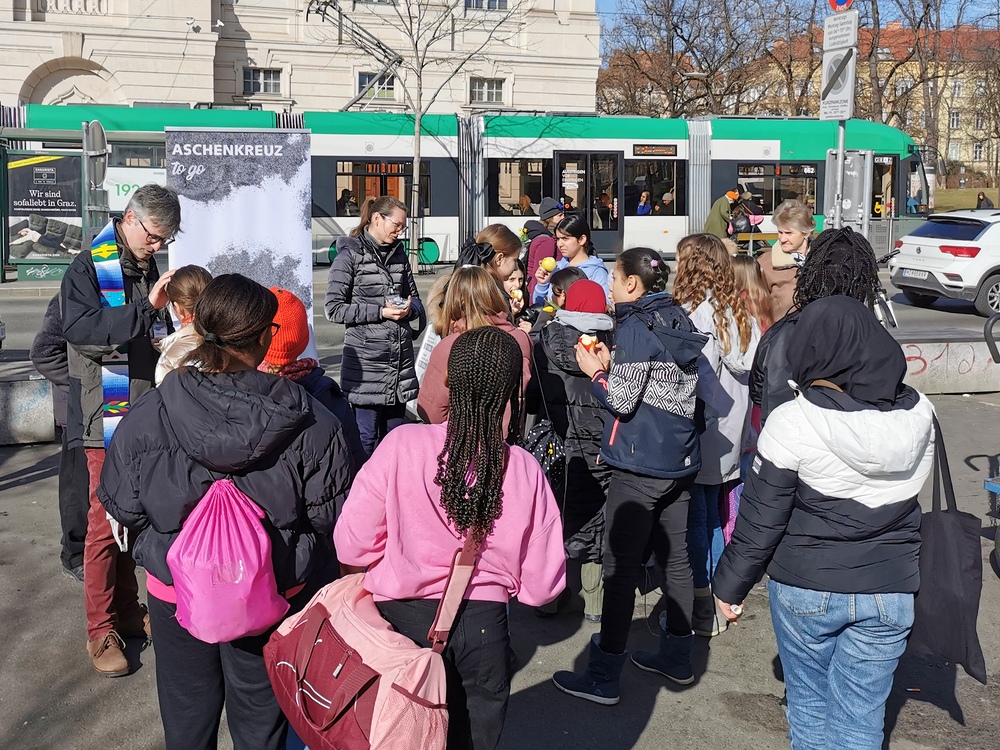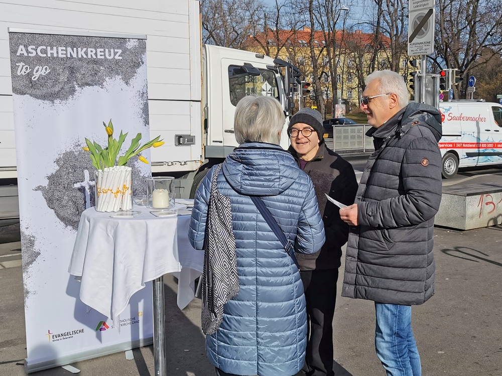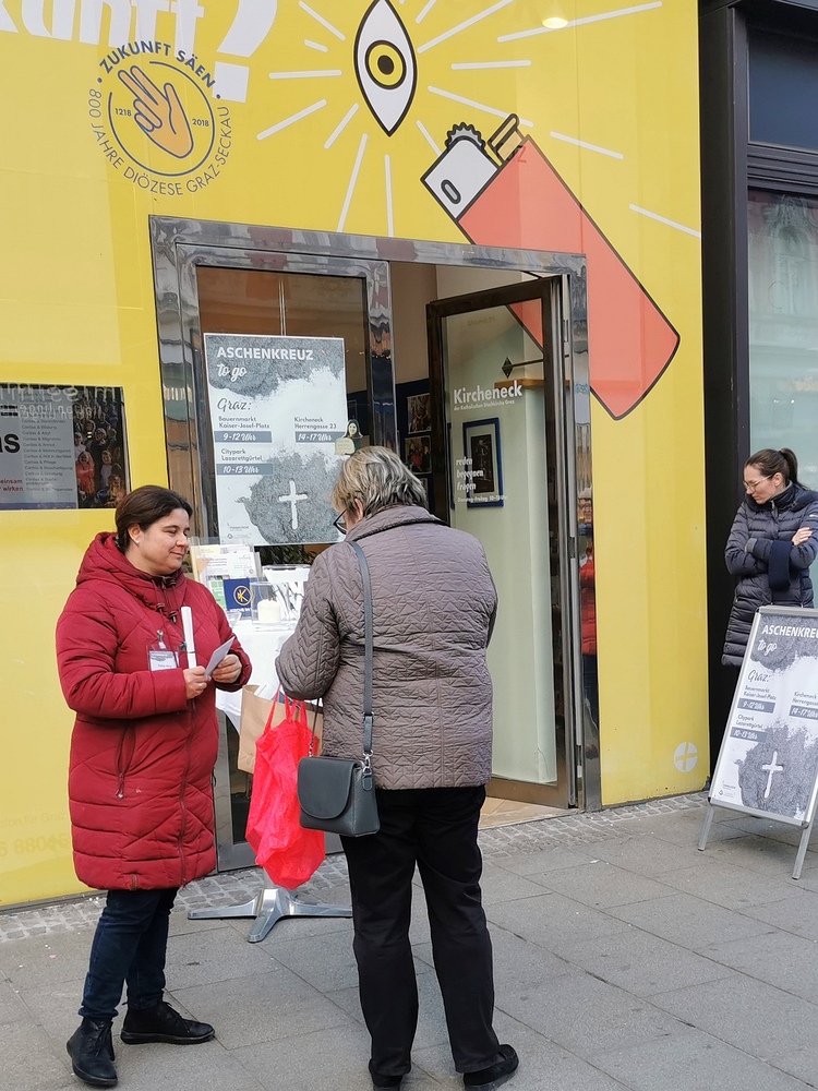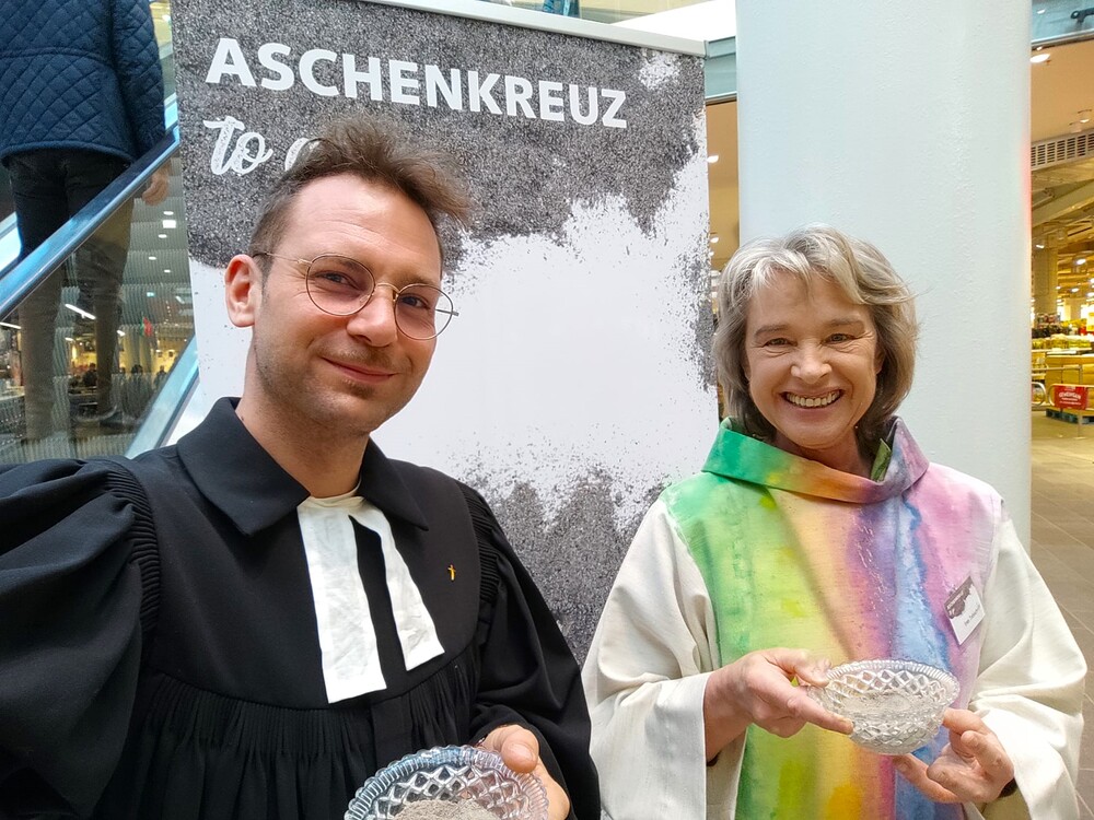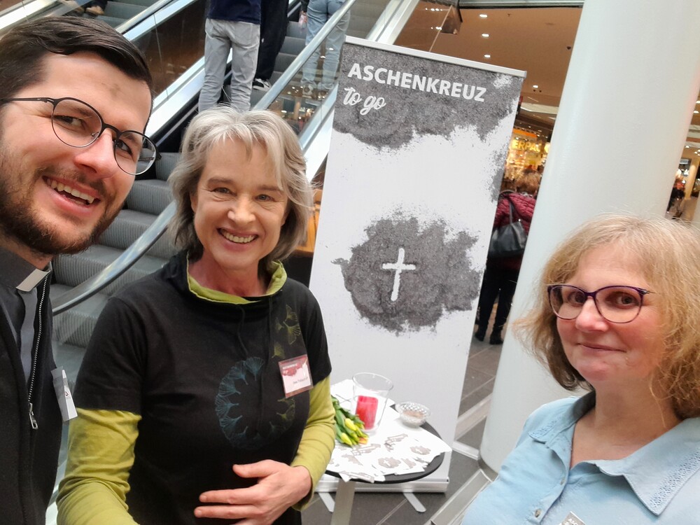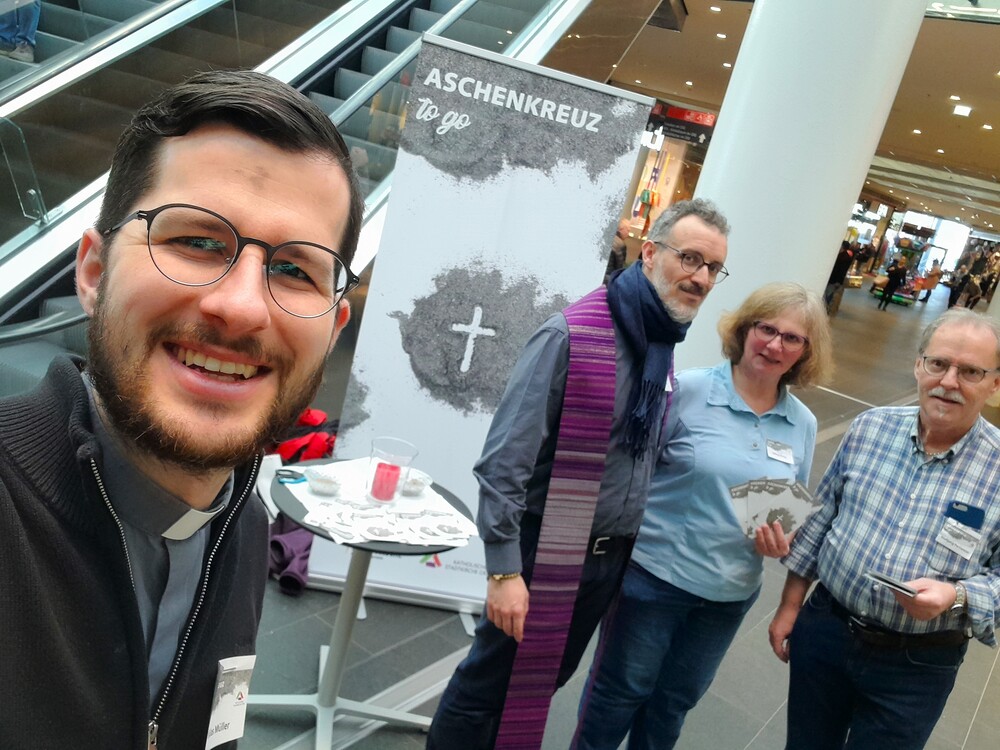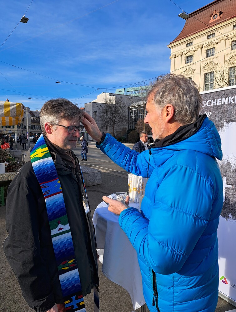 Das "Aschenkreuz to go" wurde von vielen Menschen angenommen und nicht wenige bedankten sich ausdrücklich, dass man zu "Ihnen" kommt und dies angeboten wird.