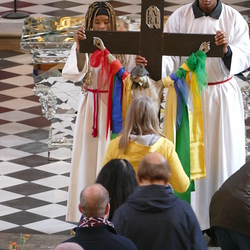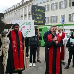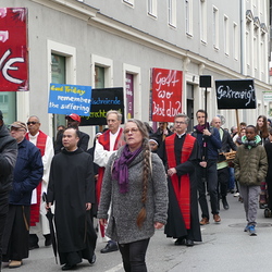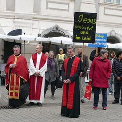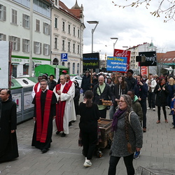 Am Karfreitag wurde in Graz-St. Andrä des Leides und der Not der Kriegs- und Krisengebiete dieser Welt gedacht und in verschiedenen Sprachen für die Menschen auf der Flucht, die Trauernden, die Kranken, die Einsamen und von Naturkatastrophen Betroffenen und die Anliegen, die wir selber mitbringen gebetet.