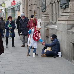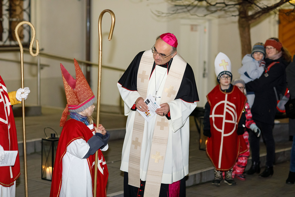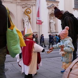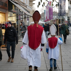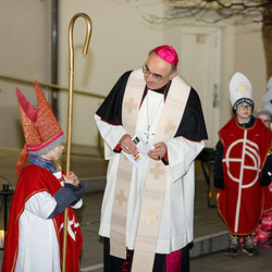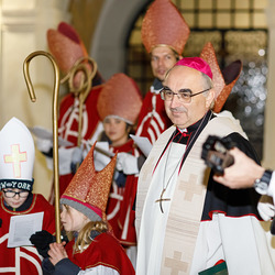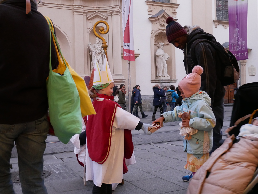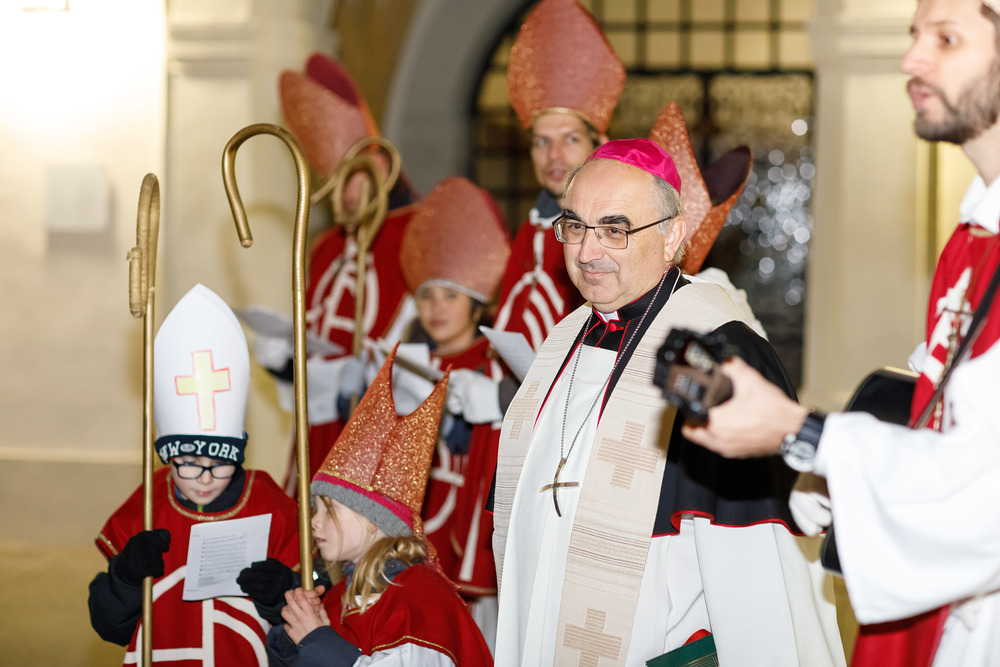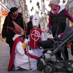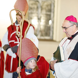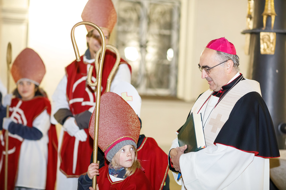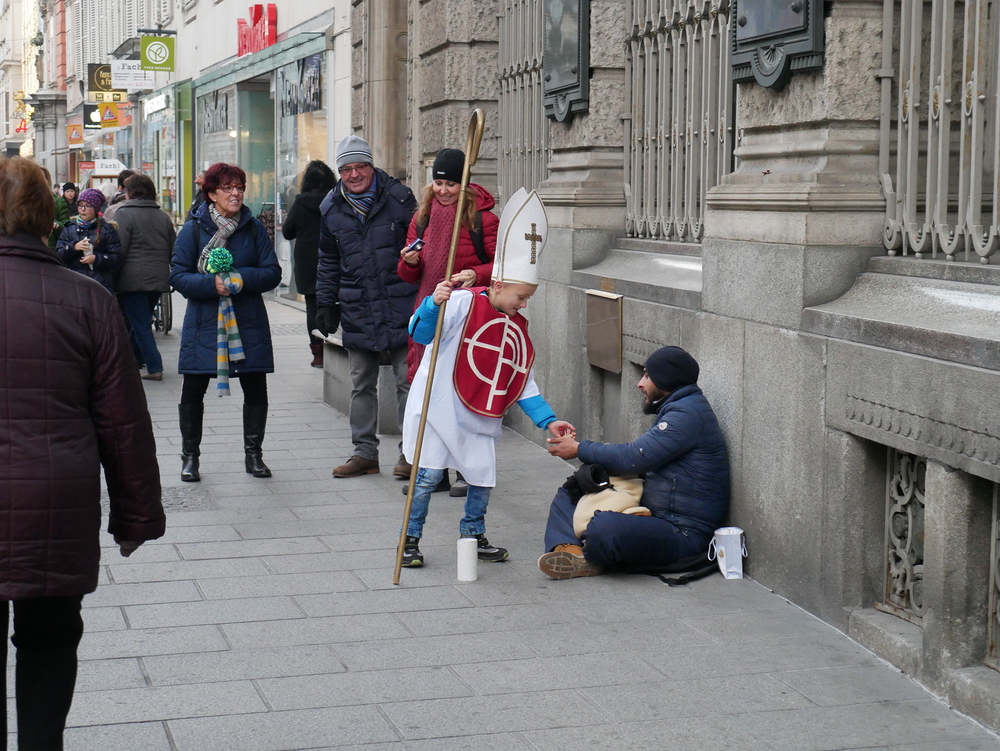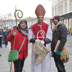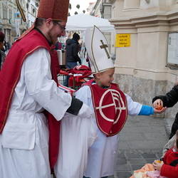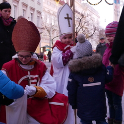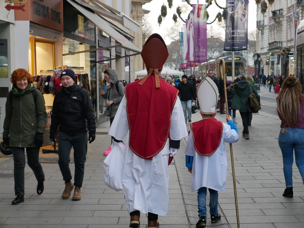 Anlässlich des Nikolaustages (6. Dezember) fand heute in der Grazer Herrengasse die alljährliche Nikolausaktion der Katholischen Jungschar Steiermark statt. Unter dem Motto „Nikolaus hat dein Gesicht“ konnten Kinder bei verschiedenen Mitmachstationen in die Rolle des Hl. Nikolaus schlüpfen und PassantInnen seine Frohbotschaft vermitteln. Bei der abschließenden Segnungsfeier betonte Bischof Wilhelm Krautwaschl „In der Legende von den goldenen Äpfeln bemerkt der Hl. Nikolaus das Leid anderer und hilft sofort. Nicht jede Not ist offensichtlich. Wenn wir achtsamer auf die Menschen um uns herum zugehen, schenken wir schon damit Freude und können ihnen beistehen und helfen.“