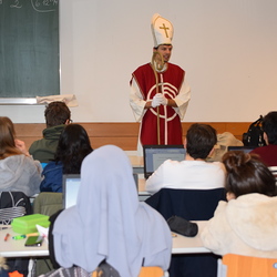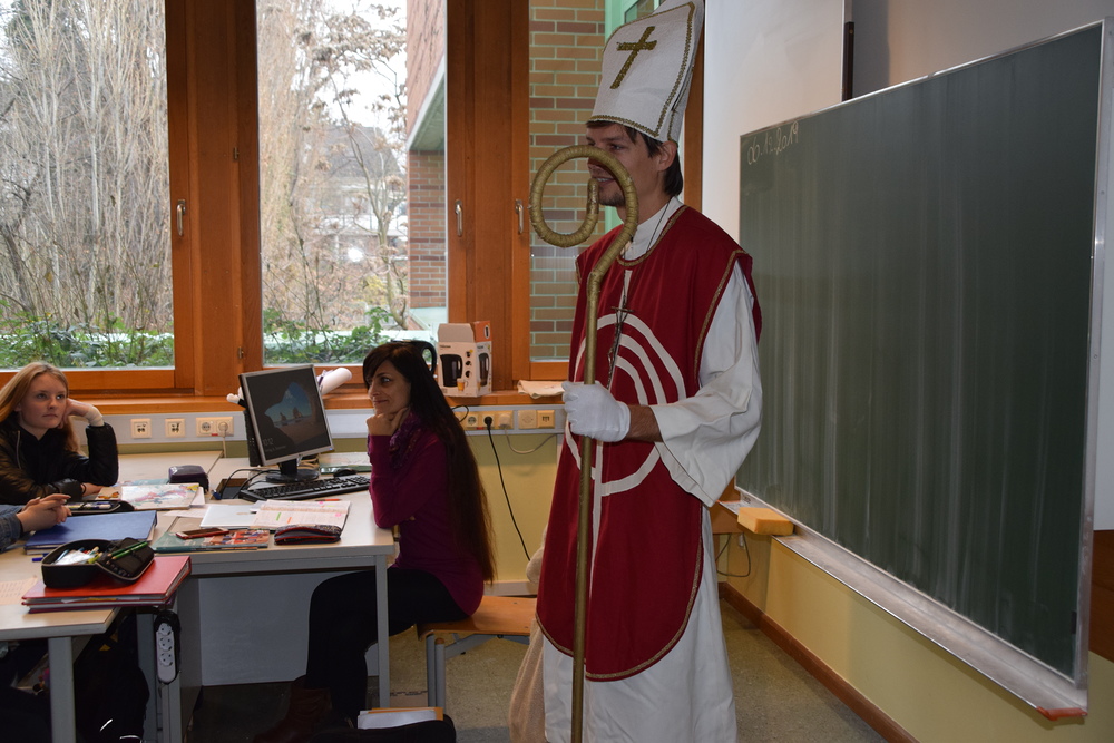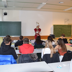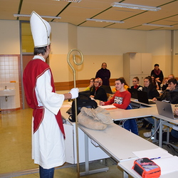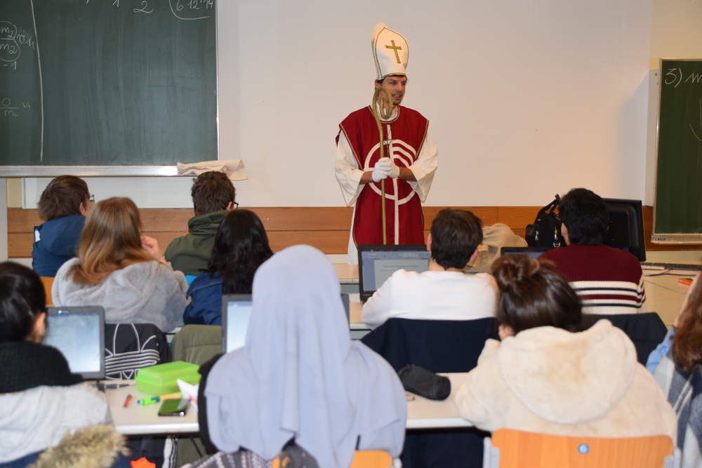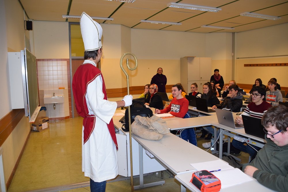 Bereits am Vormittag des 6. Dezember war die Katholische Männerbewegung gemeinsam mit der Katholischen Jungschar als Nikolaus zu Gast im BORG Monsberger und beschenkte Schüler sowie Lehrer. Gemeinsam mit den Schüler und Schülerinnen wurde über Möglichkeiten gesprochen, wie heute im Sinne des Heiligen Nikolaus den Menschen Gutes getan und Freude geschenkt werden kann.