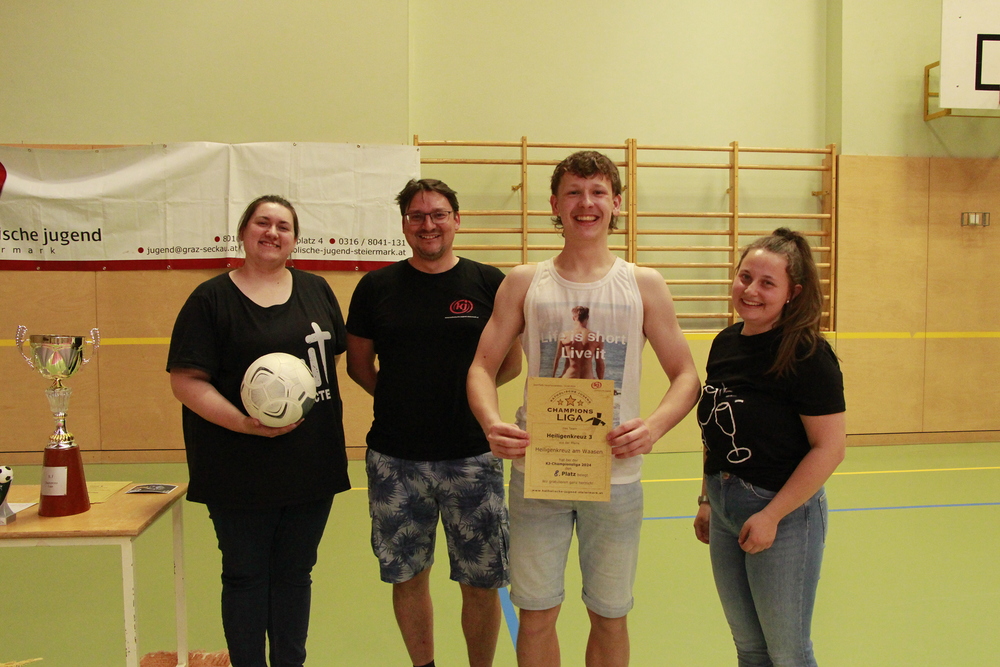 Insgesamt spielten 12 Teams aus der ganzen Steiermark um den begehrten Titel. Schlussendlich konnte sich das Team „1.FC BallaDasDaRein Gösting“ aus der Pfarre Graz-St. Anna Gösting in einem packenden Finale mit 1:0 gegen den „SC Habanero vui schoarf“ aus Hausmannstätten durchsetzen. Den 3. Platz erspielte sich „Ausgustiner Bräu“ aus Graz-Grabenkirche.