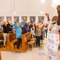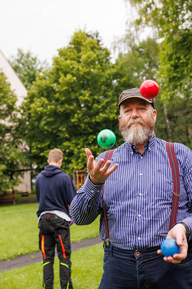 Der Gospelchor Puntigam / St. Johannes mit Jack Brew gestaltete voller Elan und berührend mit. Nach dem Gottesdienst wartete neben der Agape in buntes Familienprogramm auf alle: Steinebemalen, Basteln, Mandalas, Jonglieren mit „Flowersticks“, Diabolos, Jonglierbällen und -tellern. Nicht nur die Kinder, auch die Erwachsenen durften sich als Akrobat:innen ausprobieren.