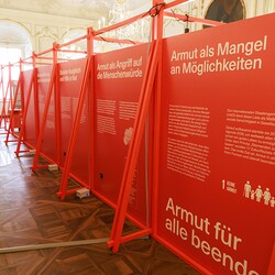 Die Ausstellung zum 100-Jahr-Jubiläum der Caritas Steiermark gibt einen Einblick in die beengte Welt Armutsbetroffener und ihren beständigen Kampf, aus der Armut wieder herauszukommen. Sie beschreibt mit Mitteln der bildenden Kunst Erkenntnisse und Sichtweisen der Armutsforschung, greift Erfahrungen aus Einrichtungen zur Nothilfe auf und beleuchtet aktivistische Ansätze.