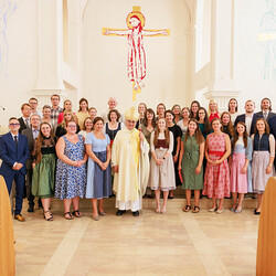 Ausgehend vom Tagesevangelium vom Auftritt Jesu in der Synagoge von Nazareth gab er in seiner Predigt die Botschaft mit, dass alle in ihr je eigenes Nazareth gesandt sind, in das eigene Umfeld der Schule und dort bringen sie die frohe Botschaft hin, auch wenn das in der Welt von heute nicht immer „ohne“ ist. Religionsunterricht ohne persönliches Zeugnis reicht letztlich nicht aus für die „Darbietung der staatlichen Bildungsziele“. Es wird viel Persönliches und tiefgehende Fragen, aber auch Kritisches an sie herangetragen. All diese Augenblicke geben Gelegenheit, die eigene Berufung zu leben und uns daran zu erfreuen. Daher ist der Bischof von großer Dankbarkeit erfüllt für den Dienst in und an der Kirche, der Gesellschaft und vor allem an den Kindern.