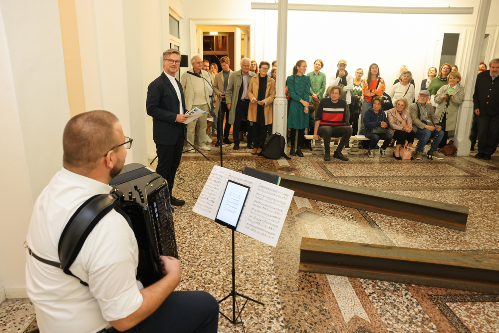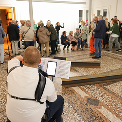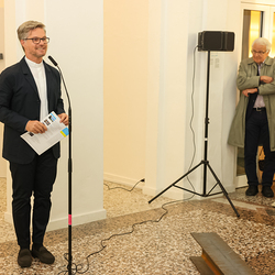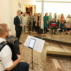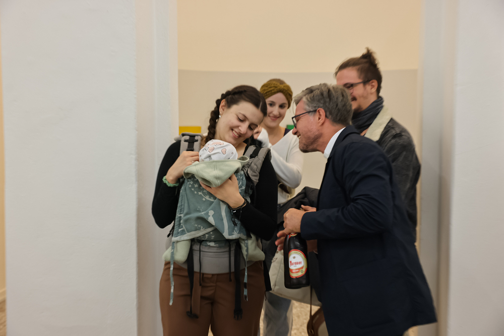 Anlässlich seiner zwanzigjährigen Tätigkeit als Leiter der QL-Galerie lud Hochschulseelsorger Alois Kölbl im Anschluss an die Ausstellungseröffnung mit dem Künstler:innenduo zweintopf zum Get Together.