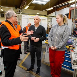 Am 31. Jänner 2020 besuchte eine Delegation der Diözese Graz-Seckau mit Bischof Wilhelm Krautwaschl den Grazer Standort des Intralogistik-Experten SSI SCHÄFER. Teil des Betriebsbesuches war eine umfassende Führung durch die Fertigung, wo es spannende Einblicke in die Produktion von automatisierten Förderanlagen und Kommissioniersystemen gab. In einem zweiten Teil konnte die Delegation, der auch die Pfarrer Karl Niederer (Graz-Gösting) und Ottó Molnár (Graz-Kalvarienberg), Friedrich Hager (Seelsorgeraum Graz-Nord Ost), Peter Hochegger und Bernhard Schwarzenegger vom diözesanen Fonds für Arbeit und Bildung sowie der Göstinger Bezirksvorsteher Bernhard Baier angehörten, mit der Unternehmensspitze des Grazer Standortes zusammentreffen.