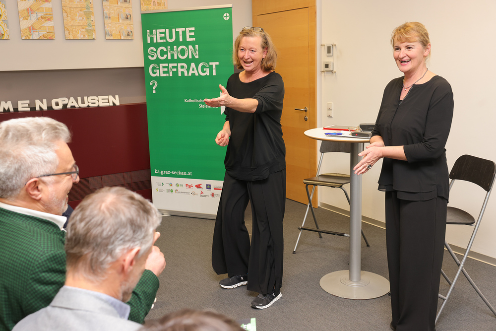 In guter Tradition wurden dort all jene bedankt und verabschiedet, die ihr ehren- und/oder hauptamtliches Engagement in der KA seit Juli 2023 beendet haben. Für kurzweilige Unterhaltung mit Witz und Charme sorgten Die Menopausen, Elke Körbitz und Ulrike Brantner, mit ihrem Kabarett.