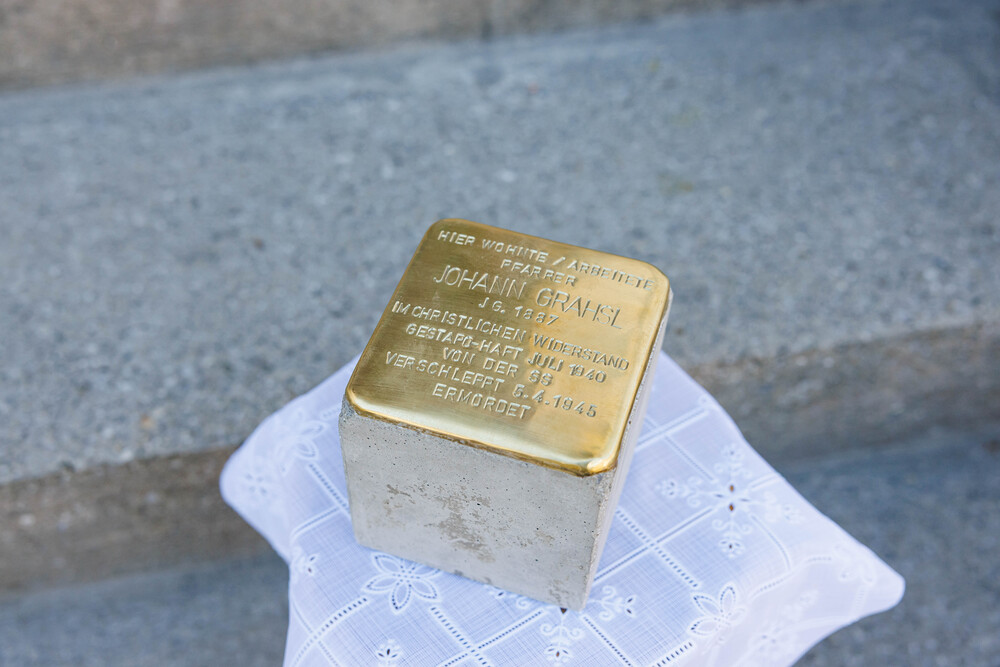 In der Pfarrkirche Gasen wurde eine Gedenkmesse für Johann Grahsl gefeirt. Im Anschluss daran fand die Gedenkfeier mit der Verlegung des Stolpersteines im Pfarrhofbereich statt. Die oft in Gehsteigen eingelassenen Gedenktafeln erinnern meist an Menschen, die der Verfolgung durch das nationalsozialistische Regime zum Opfer fielen.