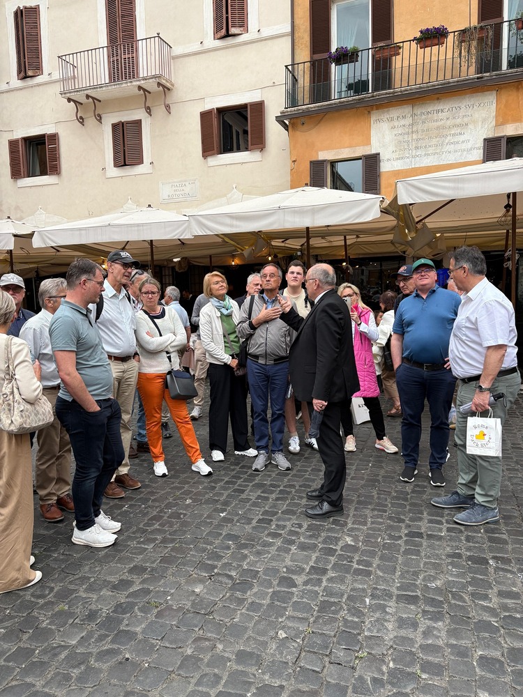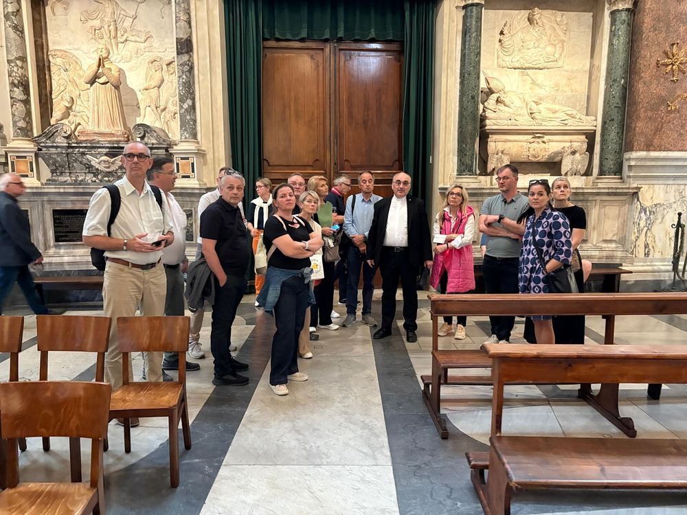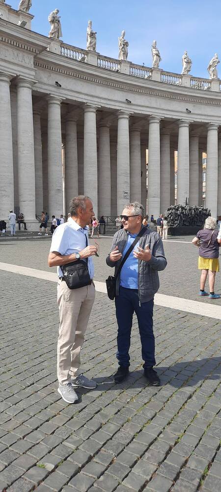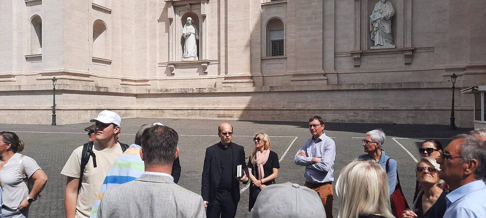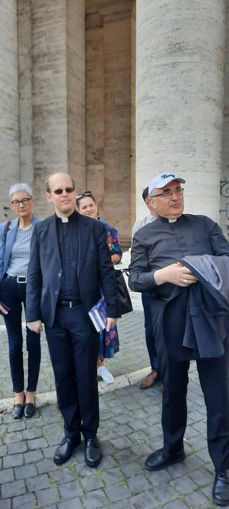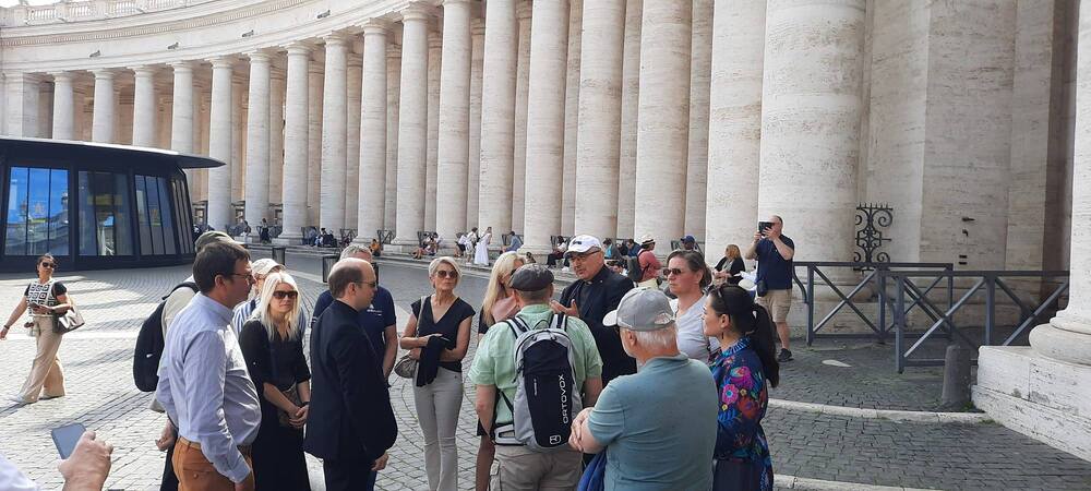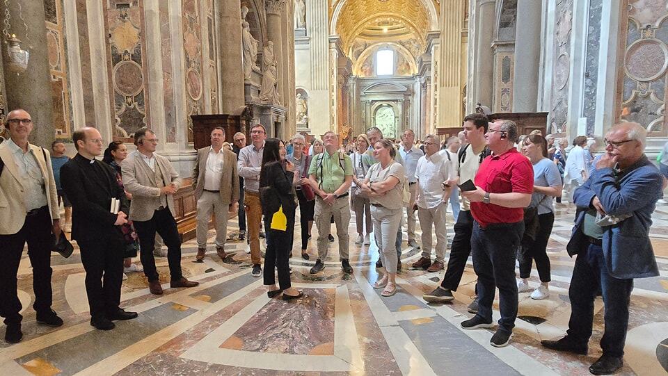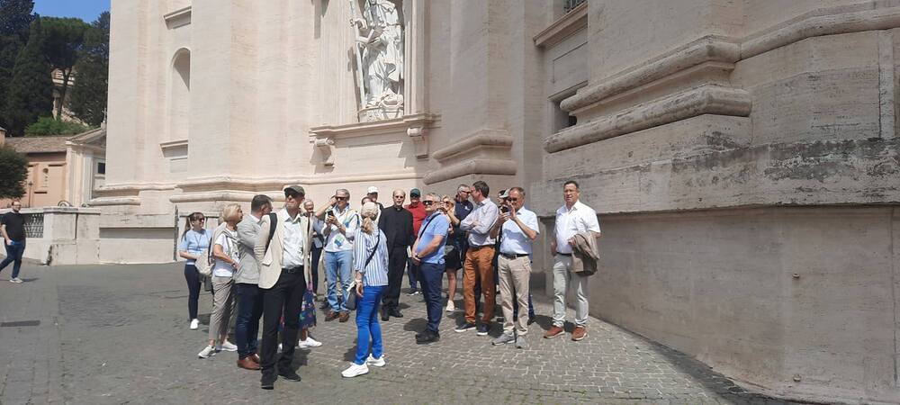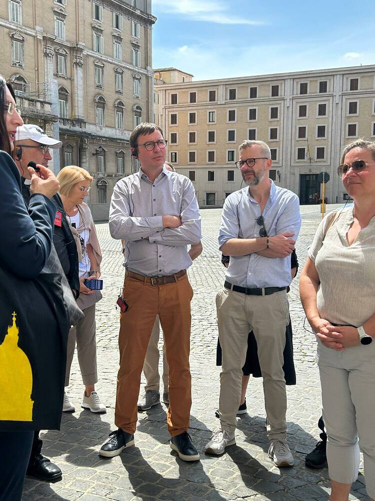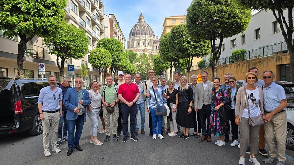Der Fonds für Arbeit und Bildung der Diözese Graz - Seckau lud daher Preisträger:innen der vergangenen Jahre ein, gemeinsam mit Vertreter:innenn der WKO Steiermark, der Arbeiterkammer Steiermark und der Diözese Graz-Seckau die Tage der Arbeitnehmenden und der Unternehmer:innen gemeinsam in Rom zu verbringen. Neben dem Besuch der Hauptkirchen und der Mitfeier der Gottesdienste standen - gerade in den Tagen der Sedisvakanz interessant - Gespräche etwa im Dikasterium für die ganzheitliche Entwicklung des Menschen (Human Developement) und der Österreichischen Botschaft beim Heiligen Stuhl auf dem Programm. Gemeinsam baten wir freilich auch um einen guten neuen Papst, der ab morgen im Konklave von den wahlberechtigten Kardinälen gesucht wird.