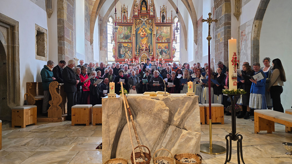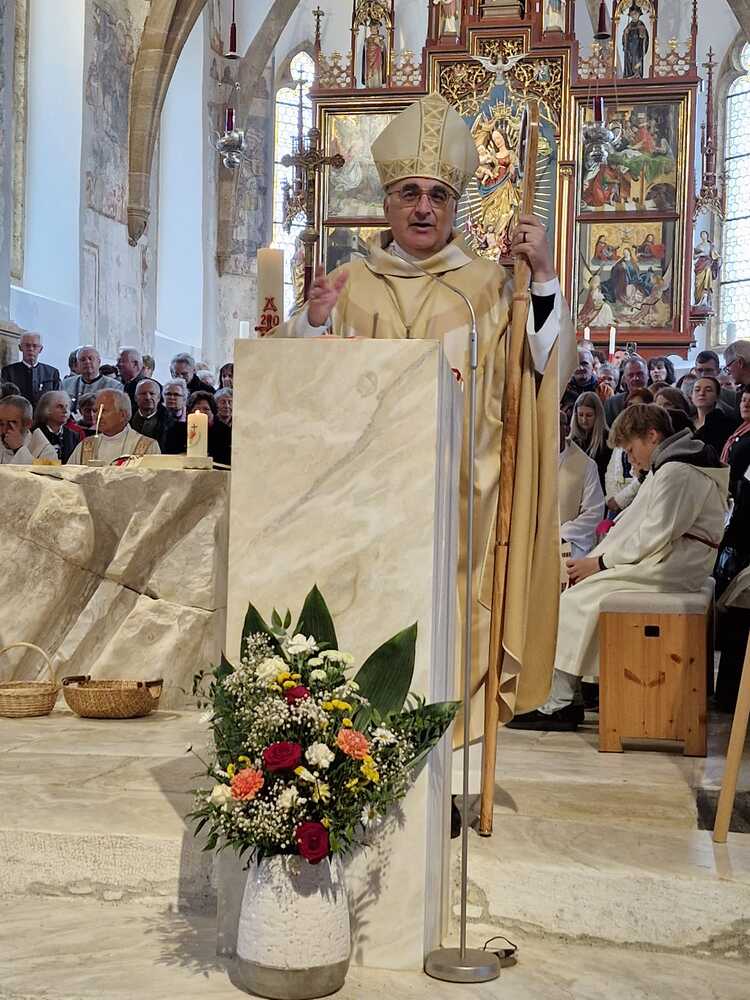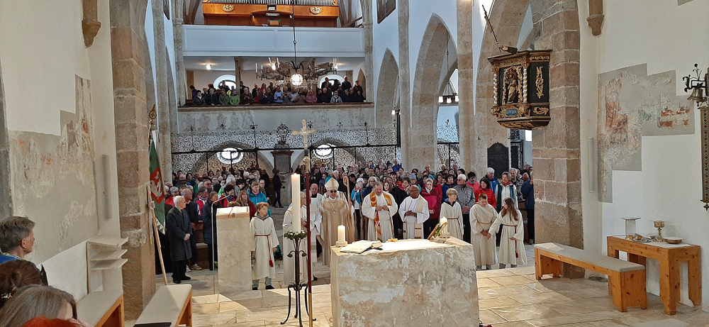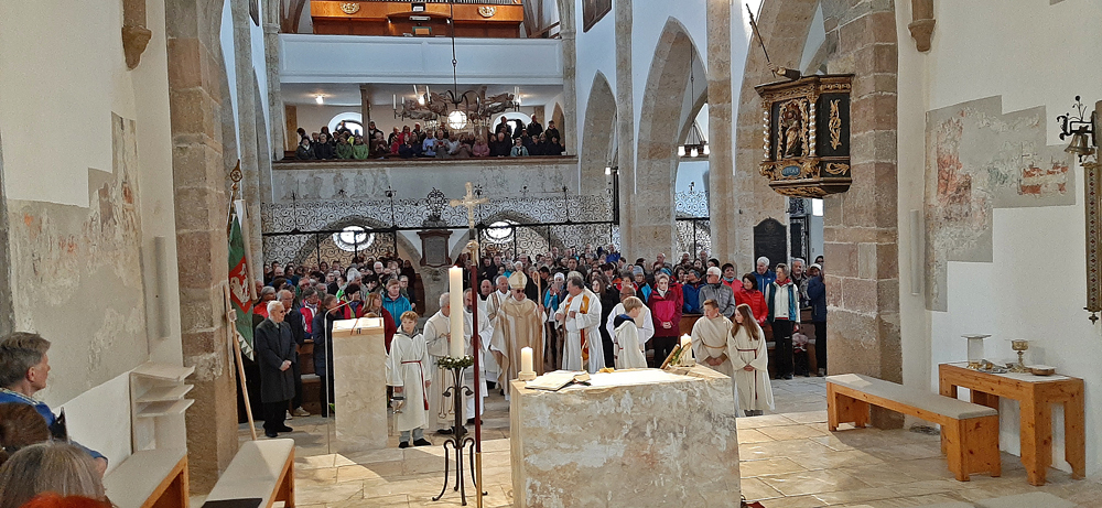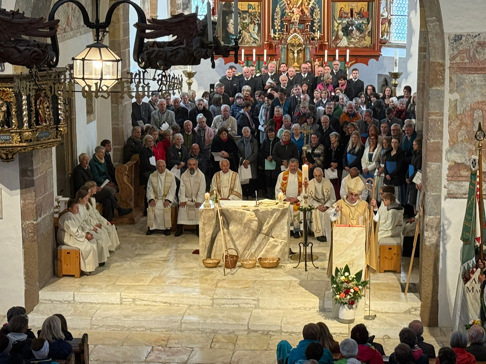 Bischof Wilhelm Krautwaschl zelebrierte mit Seelsorgeraumleiter Pfarrer Thomas Mörtl, den Altpfarrern Josef Wonisch und Josef Stuhlpfarrer, den Vikaren Gregor Szoltysek und Varghese Kanjamala sowie Diakon Bernhard Mürzl den Gottesdienst zum Start des Seelsorgeraumes.