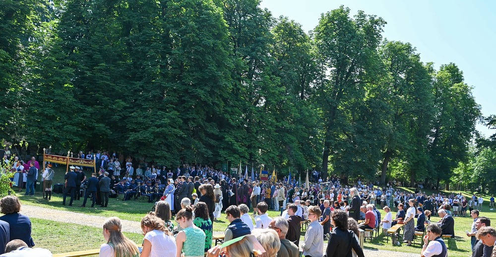 Anschließend zog die Prozession zum Katholikentagskreuz im Stadtpark, heuer speziell den Opfern des Amoklaufes in Graz gedenkend.